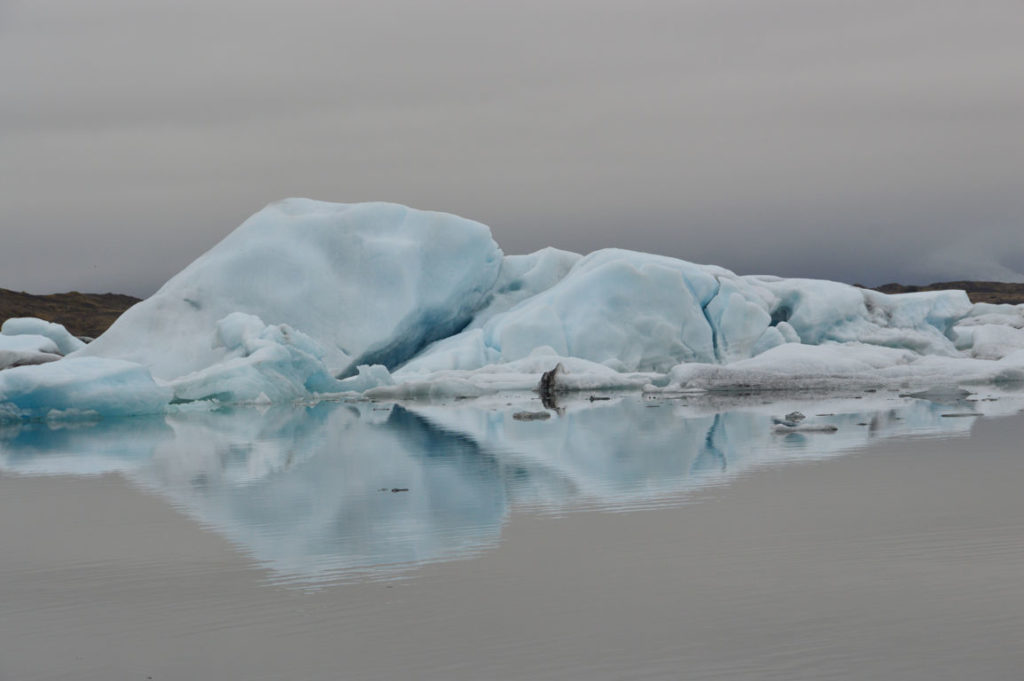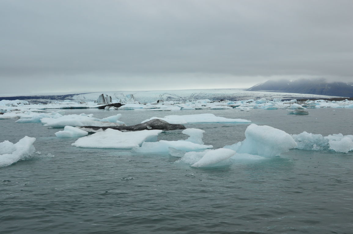 Nous n’aurons mis qu’une semaine pour faire le tour de l’Islande, mais rarement aurons-nous vu de paysages aussi différents en si peu de temps. C’est sans doute ça qui m’a donné l’impression d’avoir passé beaucoup plus de temps que cela dans ce pays entre glace et feu… Chaque journée avait ses moments « wahou » comme nous avons rarement connu en voyage, et un des moments qui nous aura le plus marqué, peut-être même encore plus que notre rencontre avec les baleines, c’est dire, c’est notre courte « croisière » au milieu des centaines d’icebergs blancs et bleus dans la lagune glacière de Jökulsarlon qui fait partie du glacier de Vatnajokull. Un paysage immaculé, calme, si reposant… c’était hypnotisant ! Et croyez-le ou non : nous avons enfin vu un phoque !