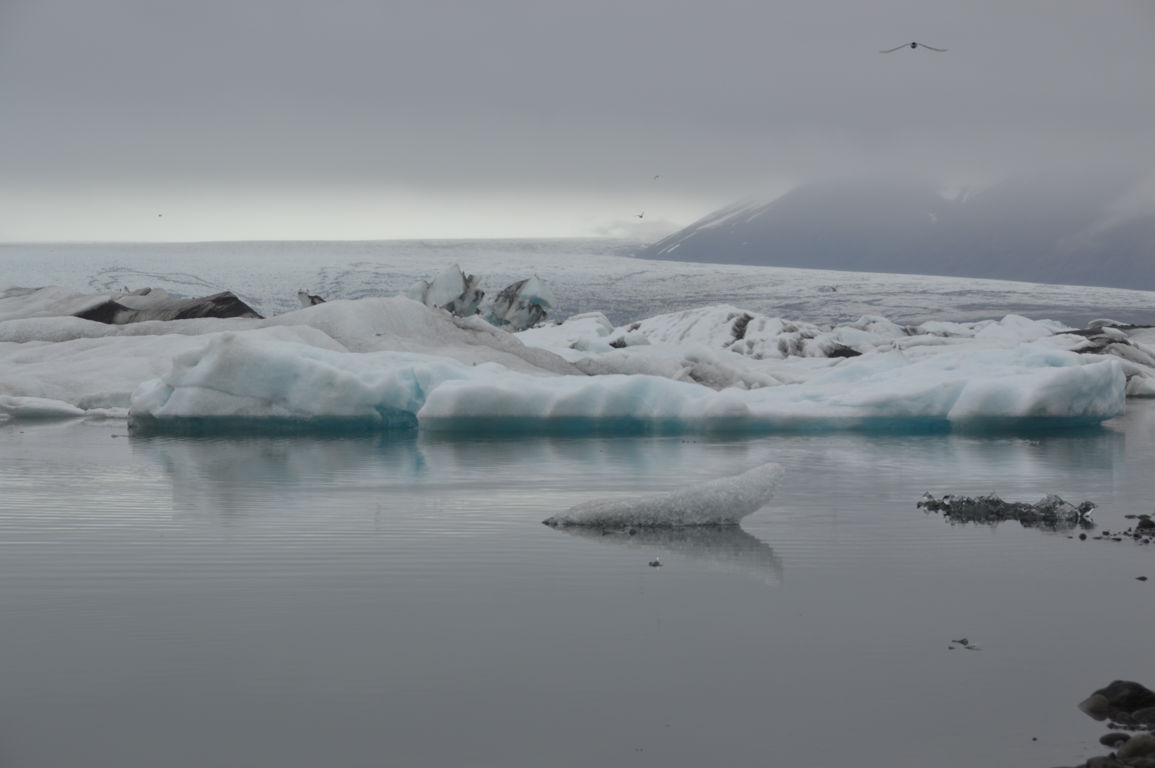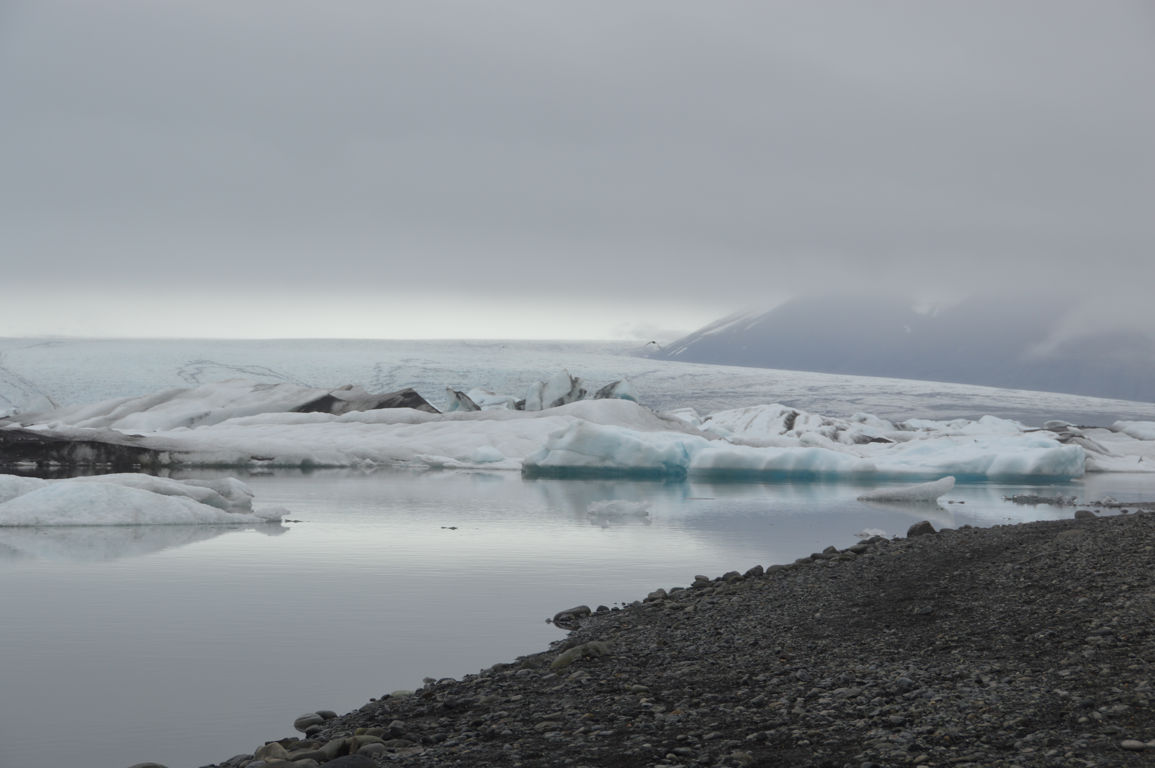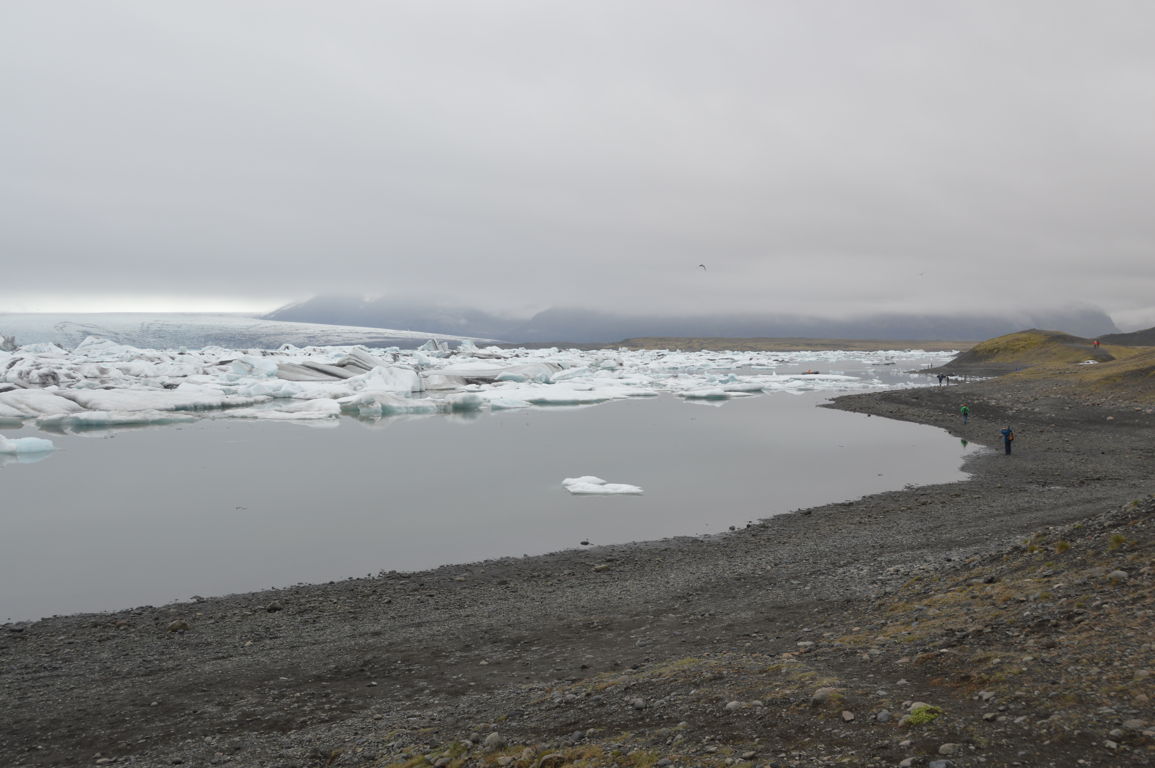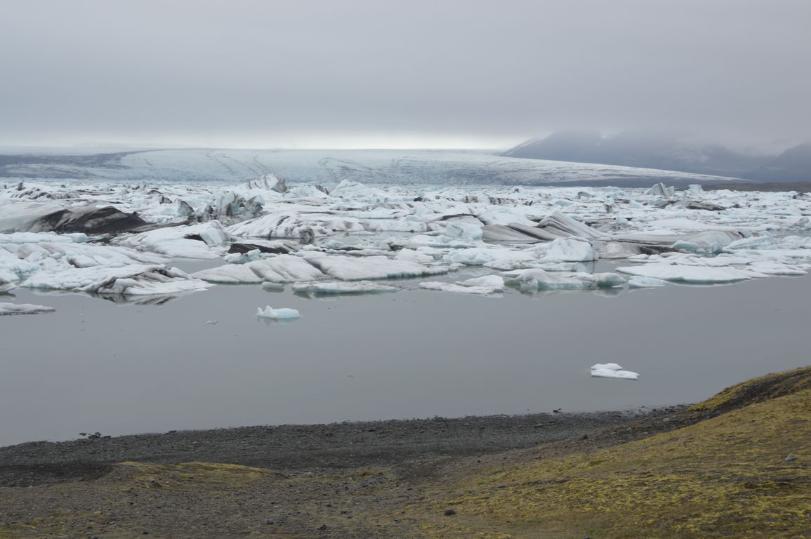 Nous nous dirigeons vers un des ses « sous-glaciers », Breiðamerkurjökull, qui se termine par un lagon rempli d’icebergs se dirigeant vers la mer : Jökulsarlon, littéralement la « lagune du glacier », sans doute la partie la plus photogénique de tout le glacier.
