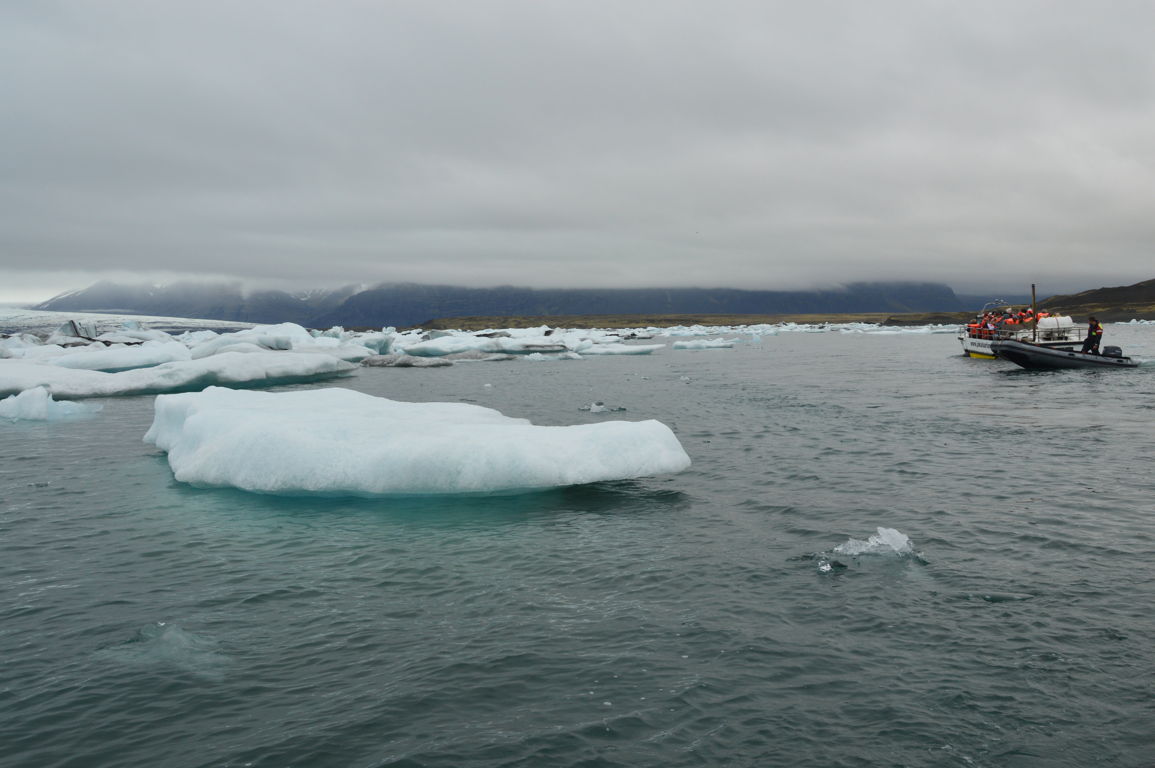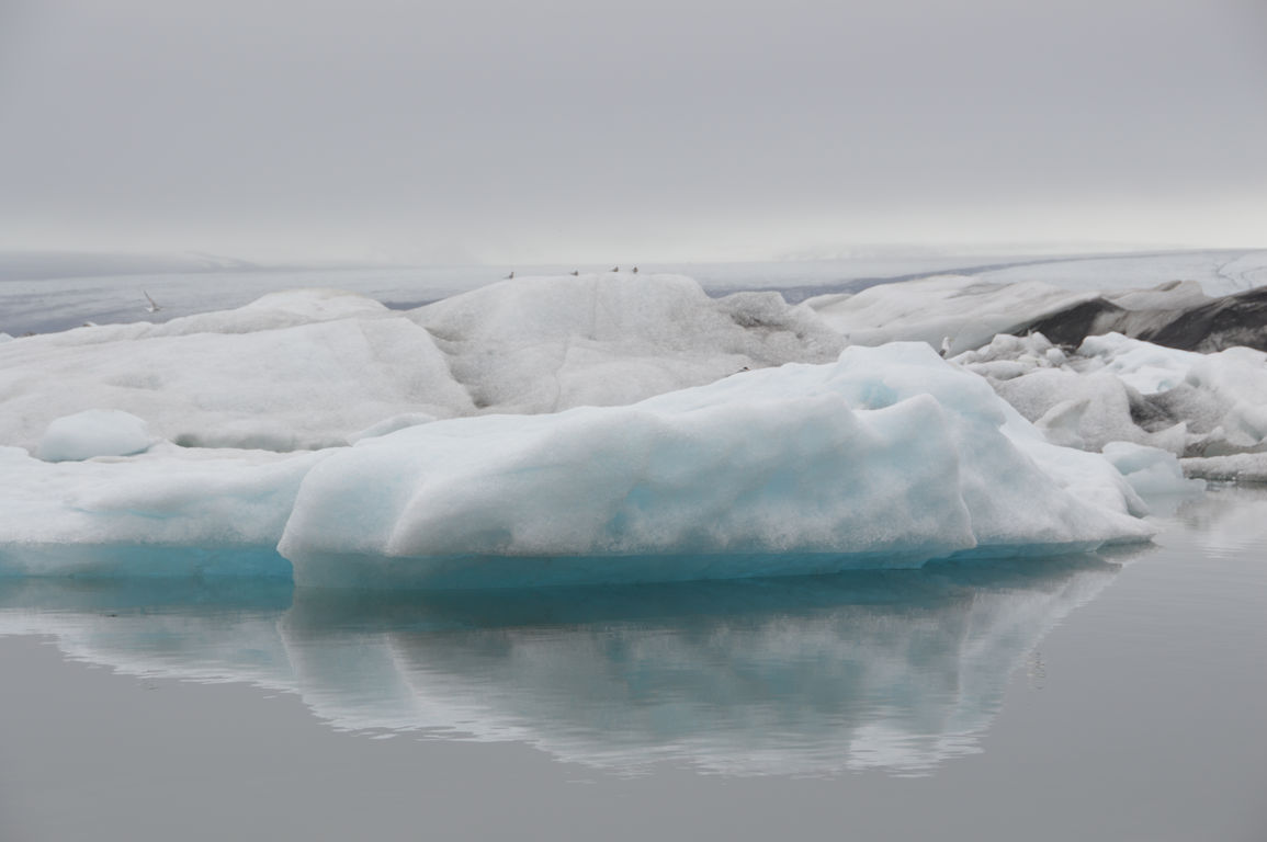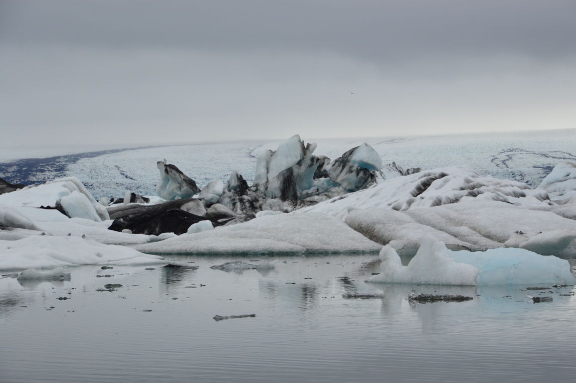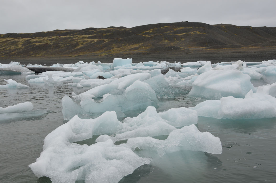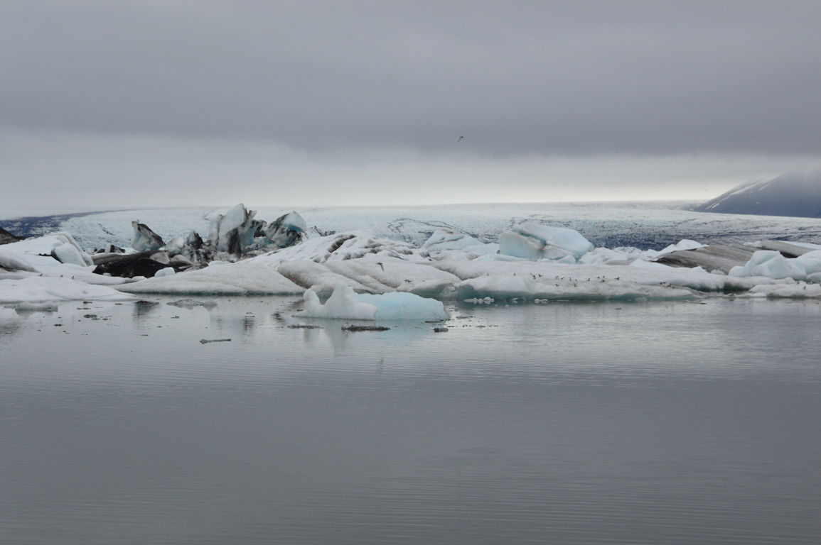 Nous nous dirigeons vers un des ses « sous-glaciers », Breiðamerkurjökull, qui se termine par un lagon rempli d’icebergs se dirigeant vers la mer : Jökulsarlon, littéralement la « lagune du glacier », sans doute la partie la plus photogénique de tout le glacier.
