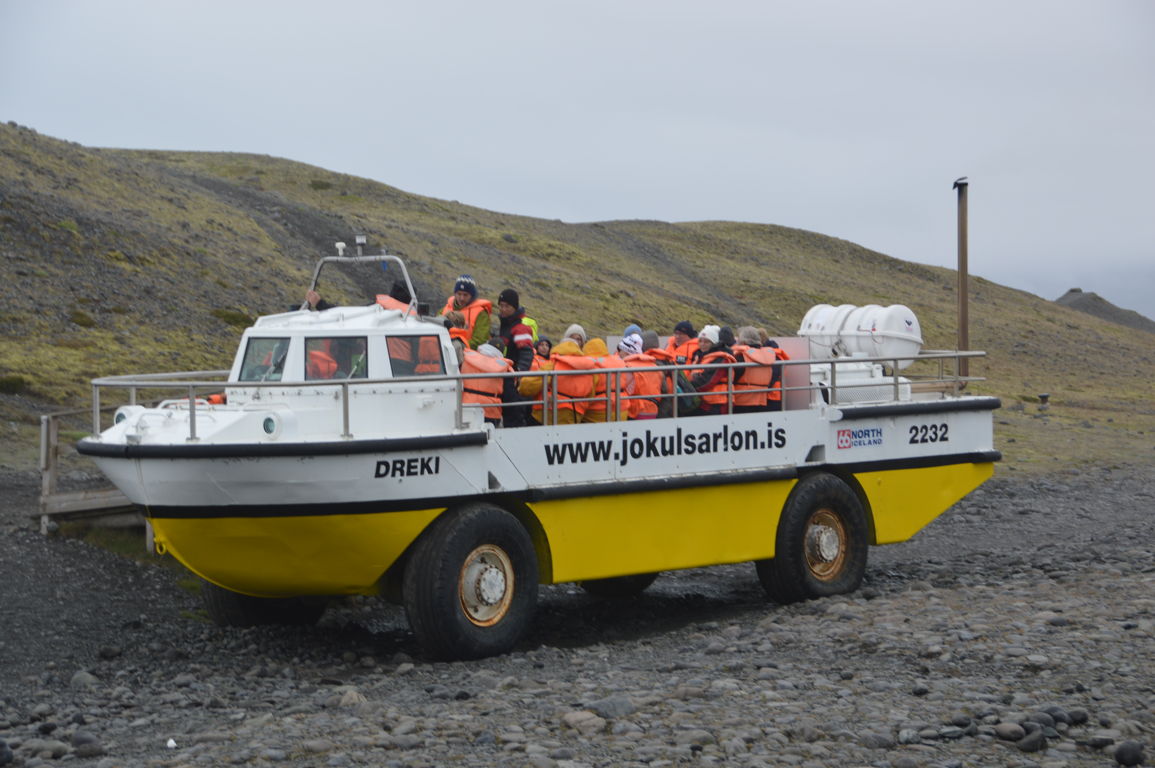 Nous montons ensuite à bord du bateau amphibie avec un groupe d’asiatique « super excités » d’être en Islande…