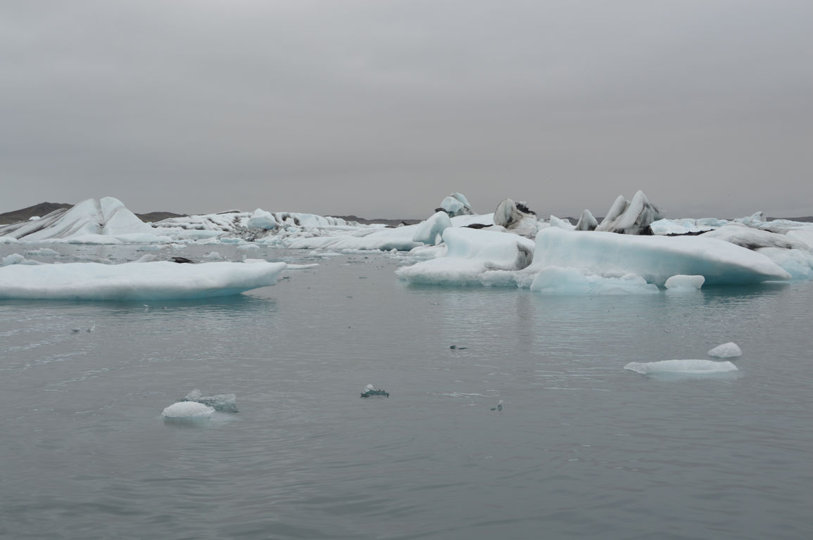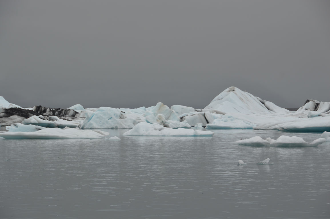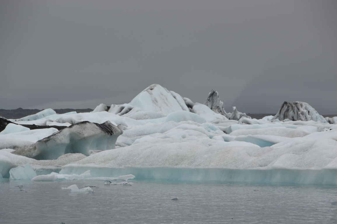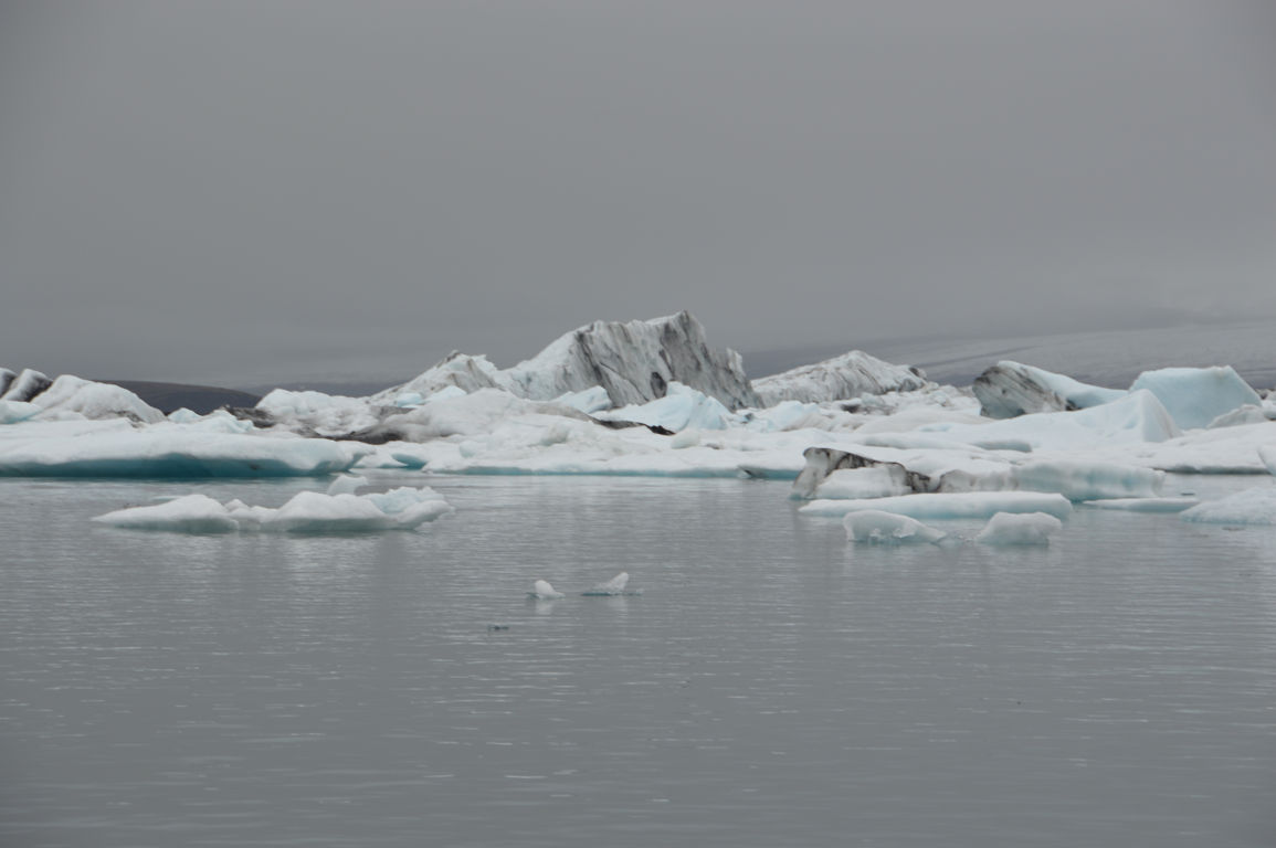 Tous ces icebergs, ce sont bien sur des blocs de glace qui se sont détachés du glacier, et qui dérivent petit à petit sur le lac avant de rejoindre la mer.