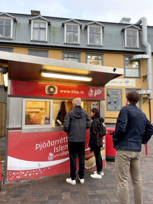 Ce célèbre stand de hot dog attire les foules depuis 1937. Avant la pandémie, il pouvait avoir plus d’une heure de file, mais il semblerait que ça se soit à présent un peu calmé. Lors de mon dernier voyage, j’en ai donc profité pour enfin aller tester cette adresse. Verdict : c’est un simple hot dog, mais un immanquable islandais à tout de même tester au moins une fois…
