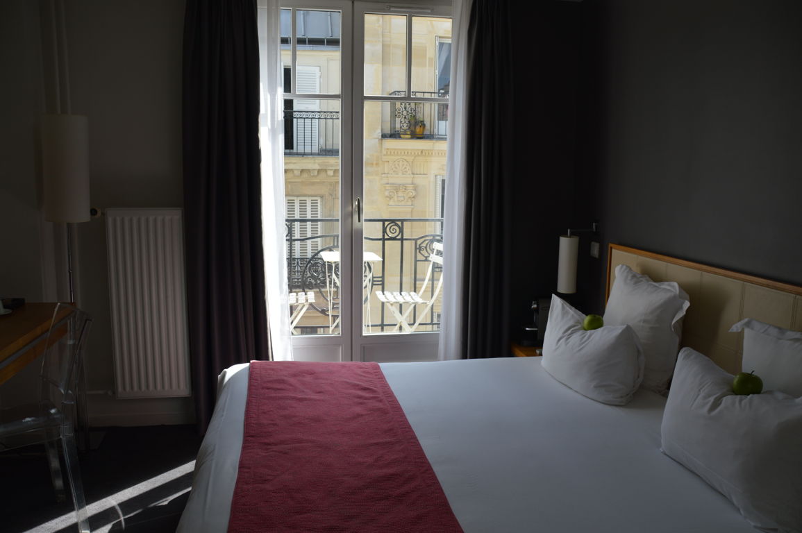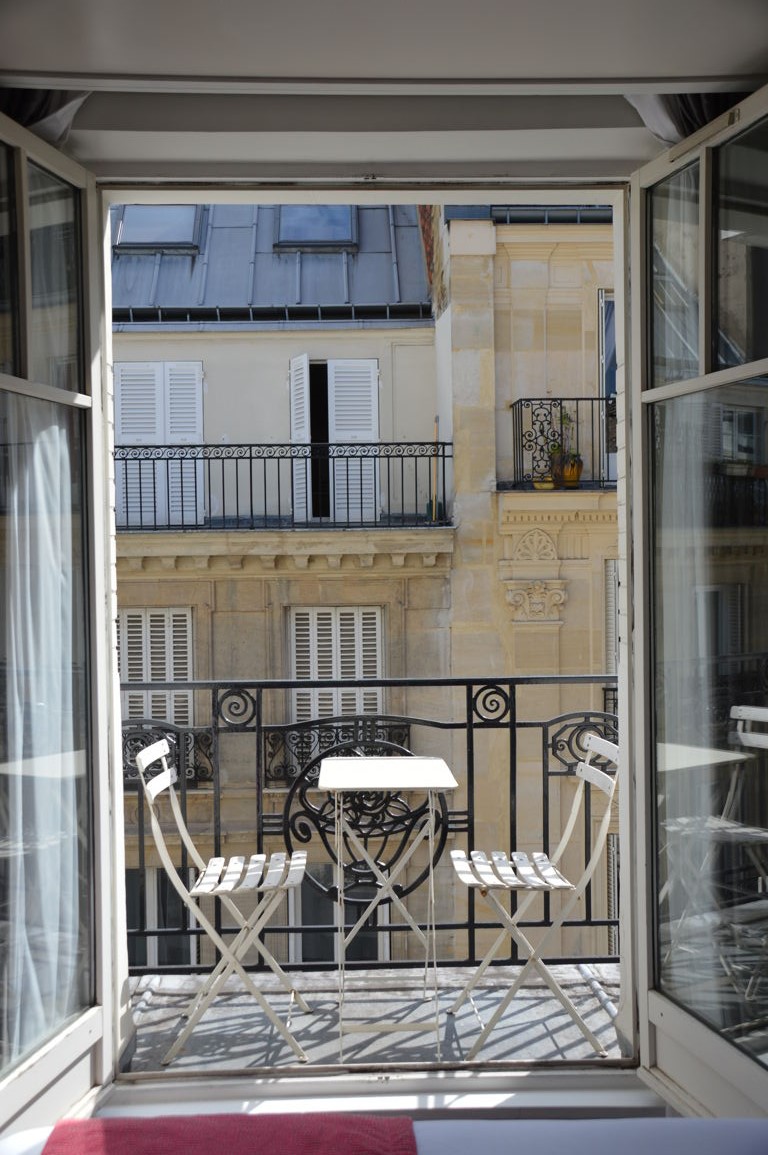 Ma chambre possédait une agréable petite terrasse « à la parisienne », donnant sur les toits de Paris. Je suis loin d’être une fana de Paris, mais là, j’ai vraiment craqué !