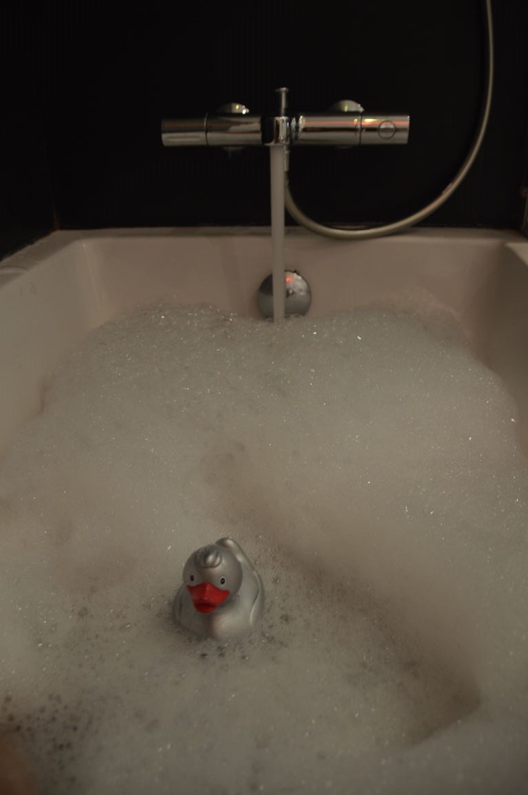 Quant à la salle de bain, elle est assez petite mais j’ai eu la bonne surprise d’y trouver un bain, ainsi qu’un petit canard en plastique qui attendait que je fasse trempette ! Un petit détail certes, mais néanmoins très amusant ! ;)