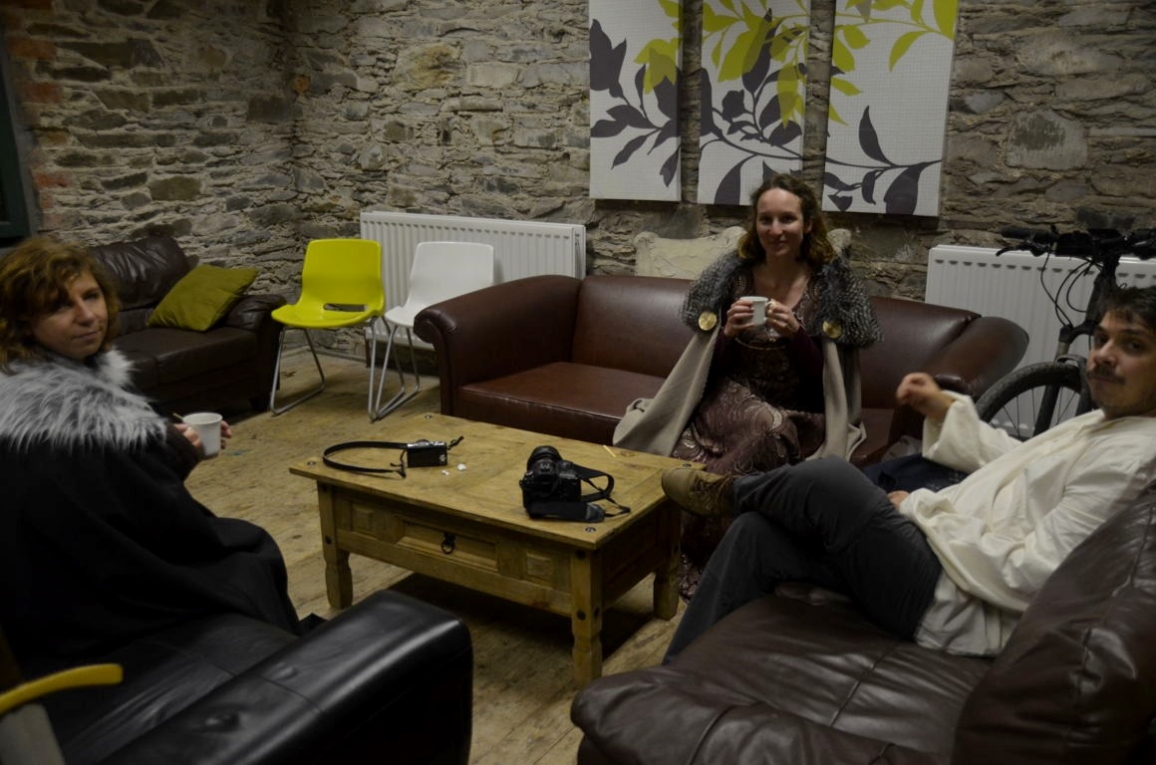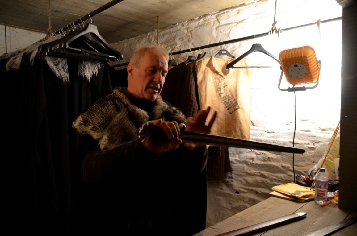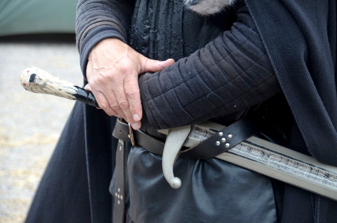 Première étape : revêtir nous aussi les costumes officiels HBO, costumes « de seconde main » ayant déjà été utilisés par les acteurs et figurants lors du tournage de la série. La classe, non? Notre Garde de Nuit nous dit qu’ils viennent d’ailleurs de prêter celui de Bran à une petite fille en visite.