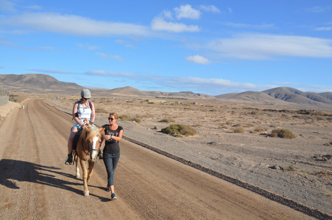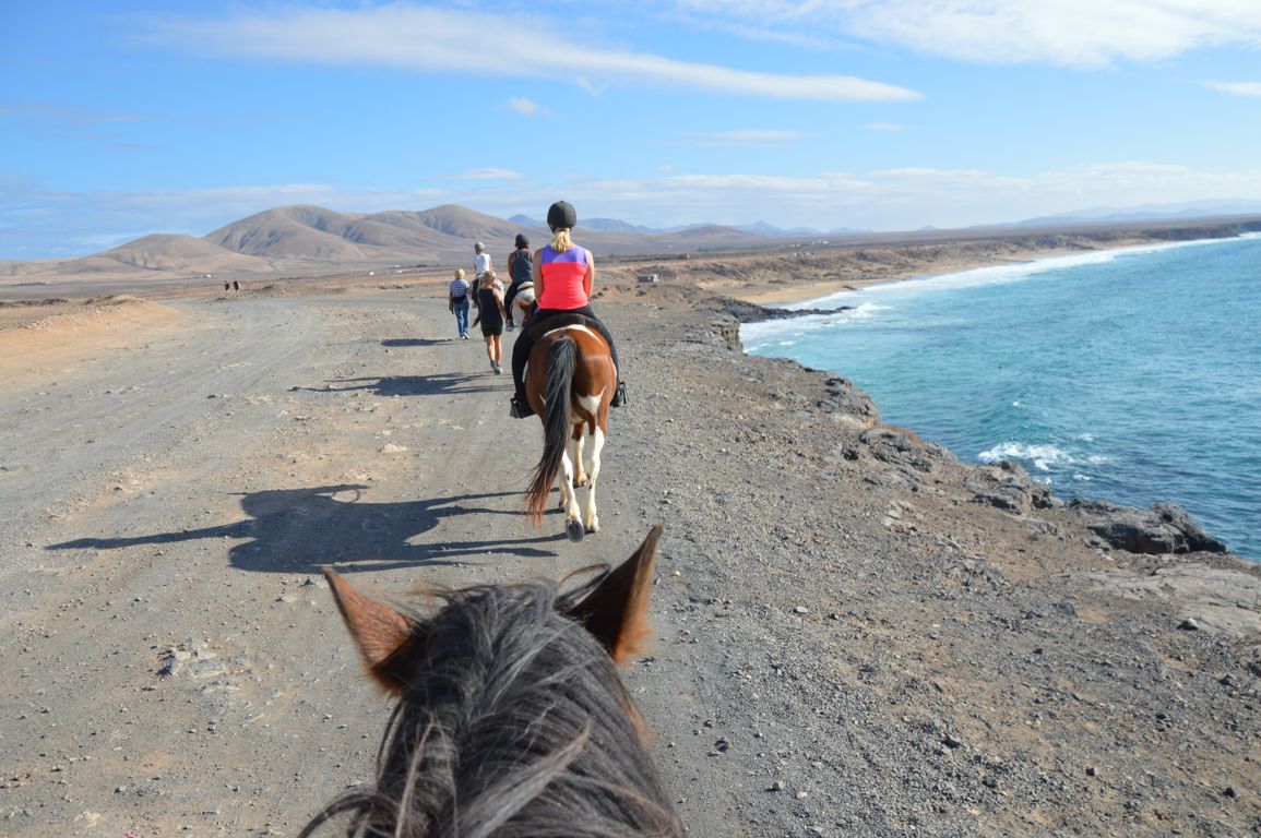 Au bout d’une demi-heure, nous arrivons sur les hauteurs de la plage de El Cotillo. Et là, il n’y a qu’une chose à dire : waouw ! La vue est splendide, et nos chevaux progressent lentement le long de la côte.