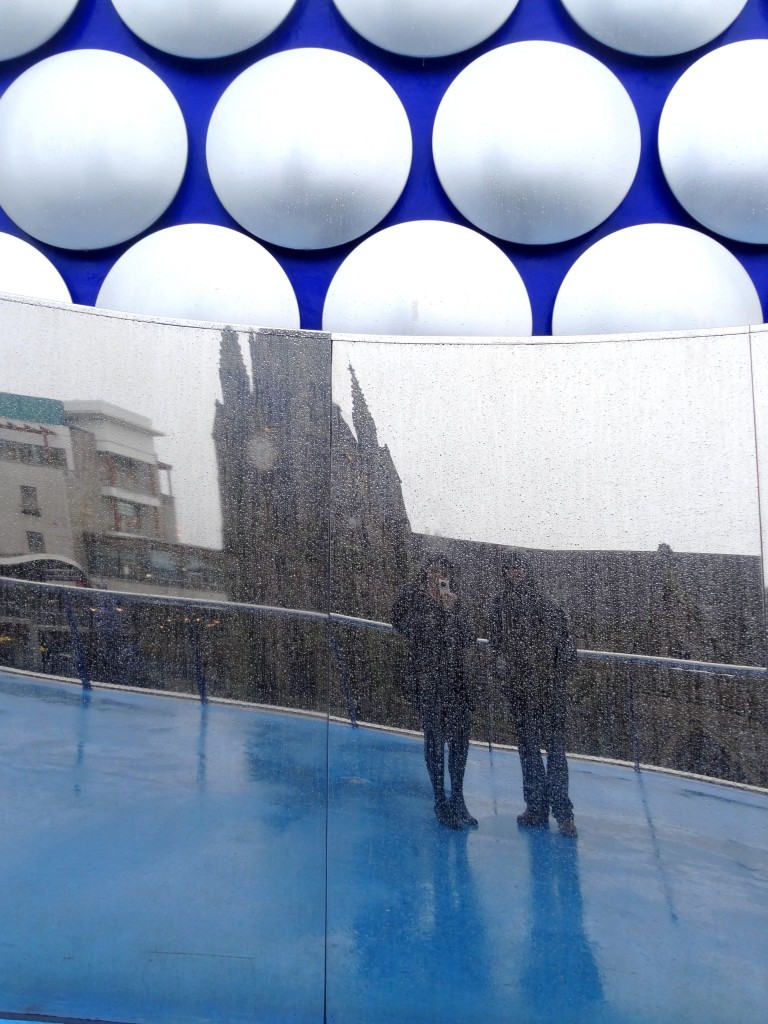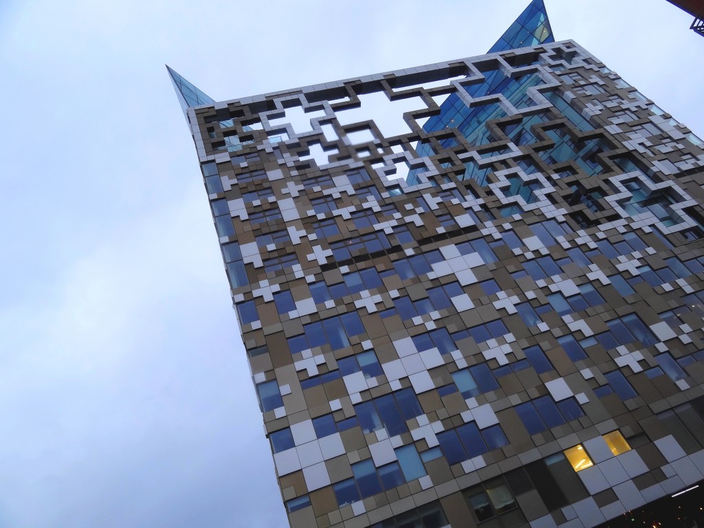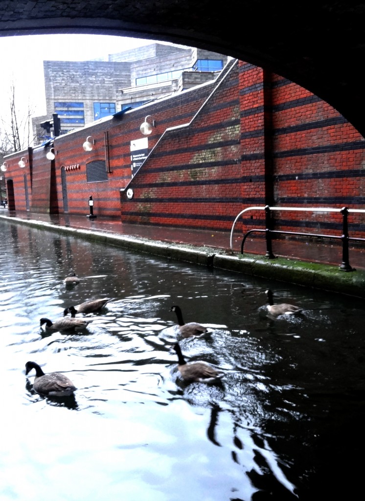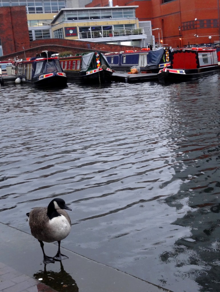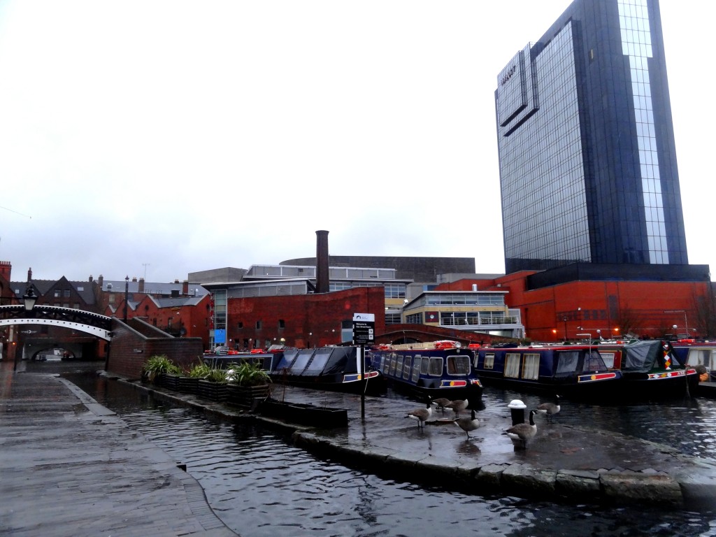 Bien sur, le centre ville ne se limite quand même pas au shopping. Une balade le long des canaux est toujours agréable, même sous la pluie (Birmingham se trouve au centre du réseau de canaux britanniques, d’où sa grande importance lors de la révolution industrielle). Il suffit de descendre quelques escaliers pour se retrouver quelques décennies plus tôt, dans un monde où les grands buildings et toutes les commodités modernes n’existaient pas encore. Par contre, une fois les escaliers remontés vers les artères principales, c’est un monde où les trois derniers siècles s’entremêlent qui se présente à nous. La dernière création sera d’ailleurs ouverte cette année: il s’agit de la toute nouvelle bibliothèque de Birmingham, encore un projet d’architecture grandiose dont Birmingham semble avoir le secret.