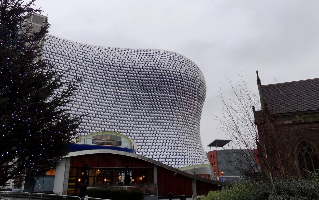 Me voici de retour d’une (nouvelle) virée made in England. Cette fois, c’est vers Birmingham que ma Fiat et moi sommes allés nous perdre le temps d’un week-end qui s’est plus ou moins résumé à un marathon shopping malls – restaurants – pubs … la faute à la pluie ? Il est vrai que, malgré la beauté de la ville, sorte de Venise à l’anglaise aux canaux nettement plus froids (mais moins pollués?), le temps que nous avons eu lors de ce weekend à Birmingham était loin d’être propice à une balade très étendue dans la ville. Surtout que, en cette dernière semaine de décembre, la plupart des sites, balades et programmes touristiques semblaient être en congés annuels. Qu’à cela ne tienne, nous avons pris le taureau par les cornes, chose toute naturelle dans une ville où le « bull » est devenu une mascotte depuis la création du Bull Ring, le plus grand centre commercial de la ville !
