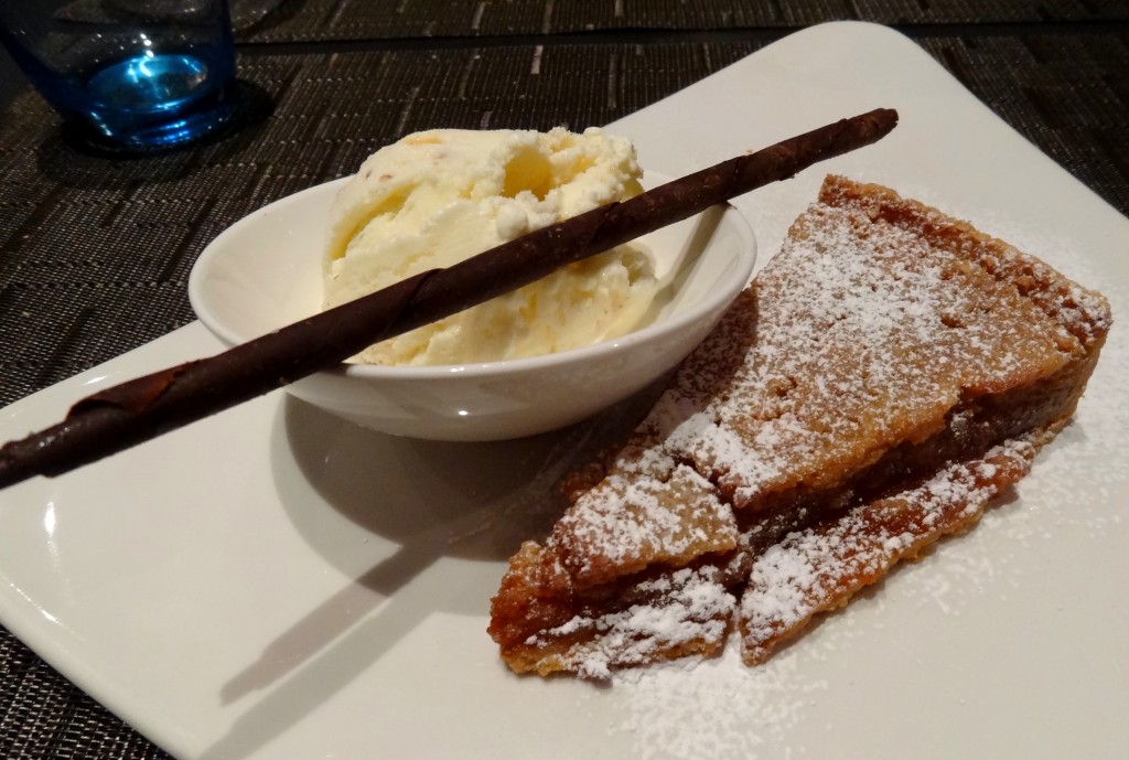 La cuisine indienne se retrouvait même à la carte du restaurant du Novotel, Elements, c’est dire si elle est partout. Dans un cadre moderne, nous y avons dégusté un repas assez traditionnel, où la quantité ne manquait pas ! Nous y avons choisi, en entrée, un plateau indien pour moi (excellent qualité-prix) et du haddock accompagné de cake au saumon. En plat principal, des pâtes à la poitrine de porc pour moi, et une casserole d’agneau du West Country pour Fred. En dessert, nous avons tous les deux choisi la tarte au sucre chaude accompagnée de glace pécan, mmmh !