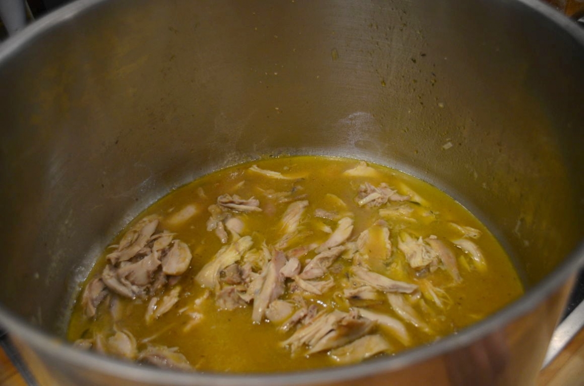 - Ajouter du bouillon, couvrir et laisser cuire à feu doux pendant que la viande se détache.