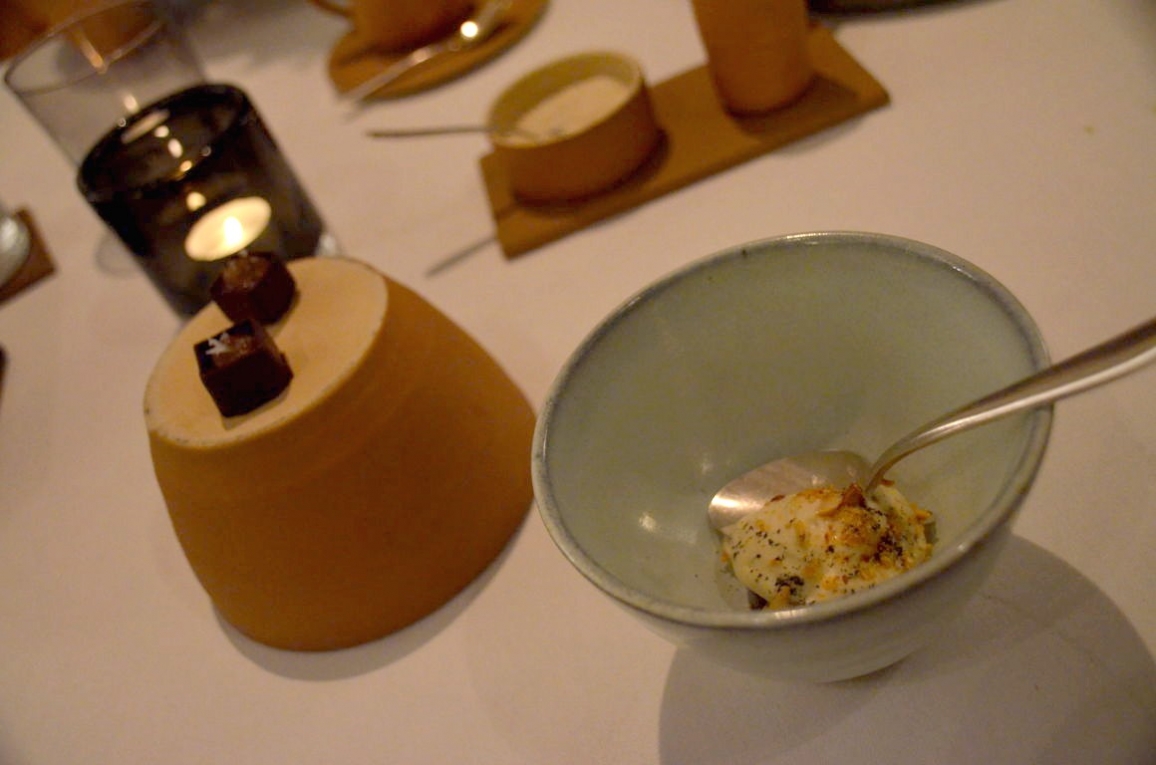Le plat principal (canard, panais, canneberge) et le dessert (pannacotta, vanille, pomme, croquant aux bonbons au citron) seront par contre une petite déception pour moi : alors que j’avais déjà pu apprécier l’art des Dewitte d’associer de nombreuses saveurs de manière assez moderne et originale (le tout avec des influences diverses), pour moi ces deux plats n’étaient pas réellement aboutis : un plat « déjà vu » et un dessert où l’association de saveurs n’avait pas grand intérêt, et ne mettait pas vraiment en avant chacun des produits utilisés.