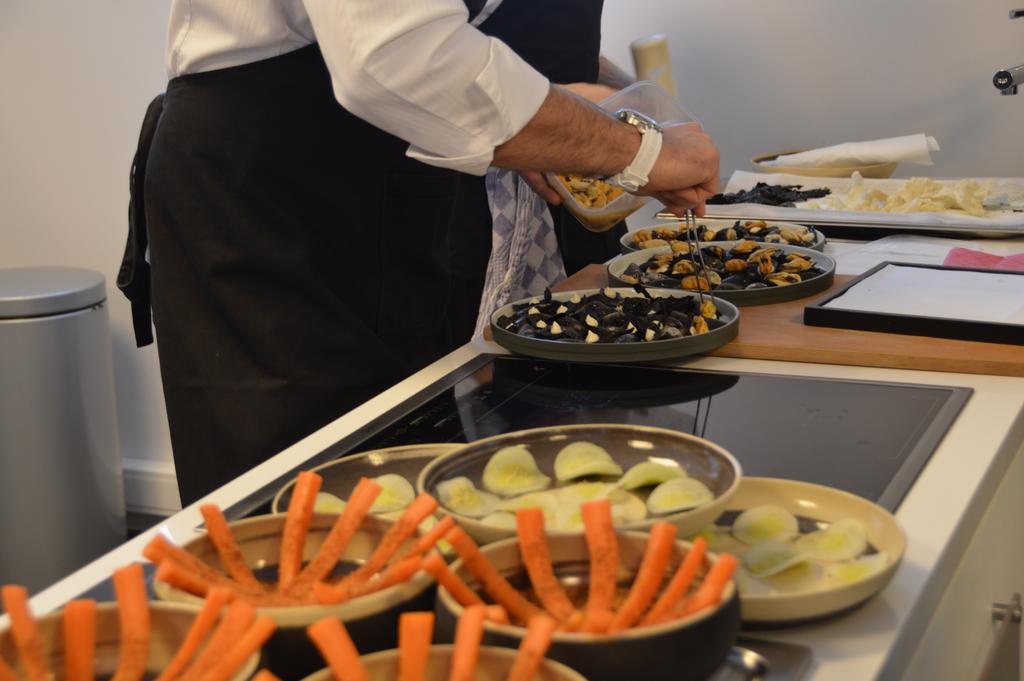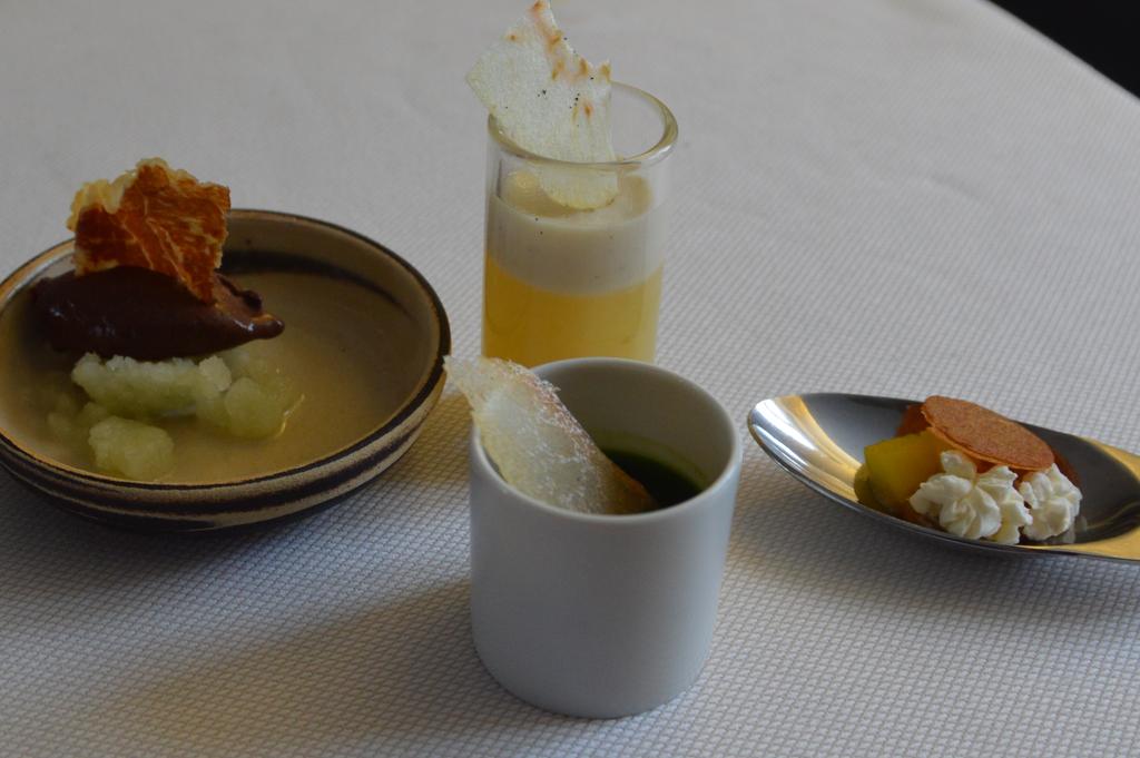 Mais avant toute chose, faisons un petit tour du propriétaire… Il y a d’abord L’Orangerie, un espace de réceptions (que l’on avait déjà découvert à l’occasion de la Korean Street Food Experience), dédié également aux cours de cuisine donnés par le chef, pour adultes mais également pour les enfants ! Cette fois, c’est là que nous avons été accueillis et pris l’apéro. En guise d’apéritif, une bonne entrée en la matière, avec les lacto carottes et terreau de céréales, millefeuille de choux rave, chips soufflé au céleri rave et shiitake et moules frites (pas les traditionnelles, mais bien des moules dont la coquille a été remplacée par une préparation frite.)