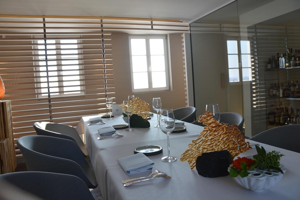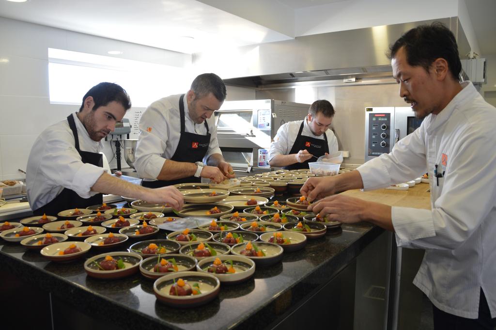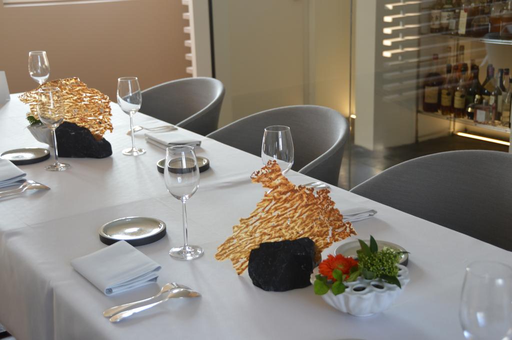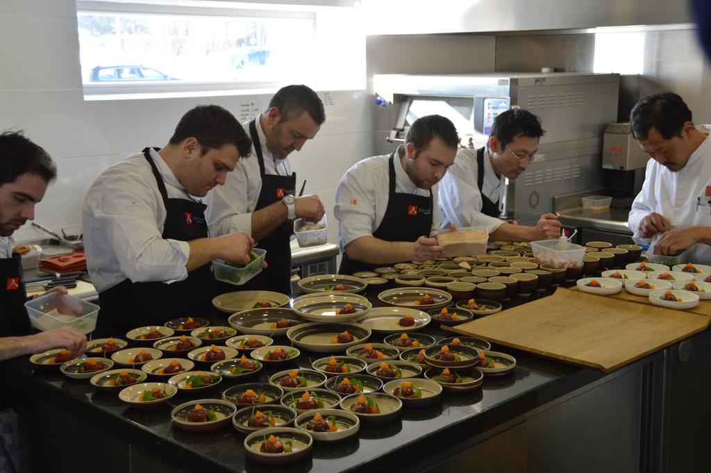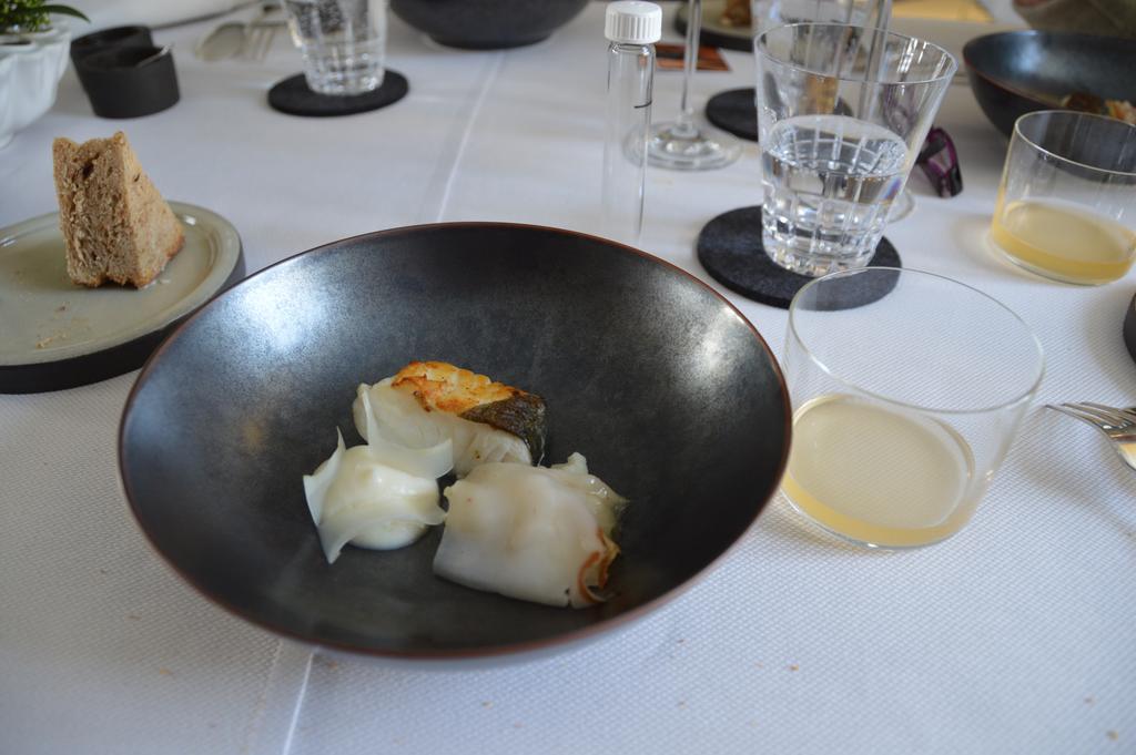 Ensuite, dans un autre bâtiment, le restaurant. Plusieurs petites pièces reliées par un long couloir avec une vue imprenable sur la campagne avoisinante, Un cadre dépouillé mais chaleureux, intime. C’est dans la salle « cave à vins » que je suis installée: nous mangerons donc face à de grands crus aujourd’hui ! Pour les curieux, direction la cuisine, la grande cuisine ! Un espace où, on l’espère, San continuera à innover pour épater encore et toujours nos papilles ! Et dans quelque mois L’Air du Temps deviendra également une maison d’hôte, avec l’ajout de cinq chambres et d’un sauna à l’étage, pour transformer un bon repas en un séjour à la campagne !
