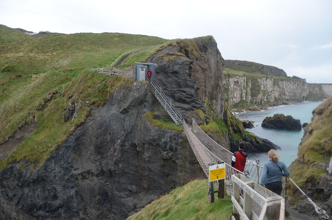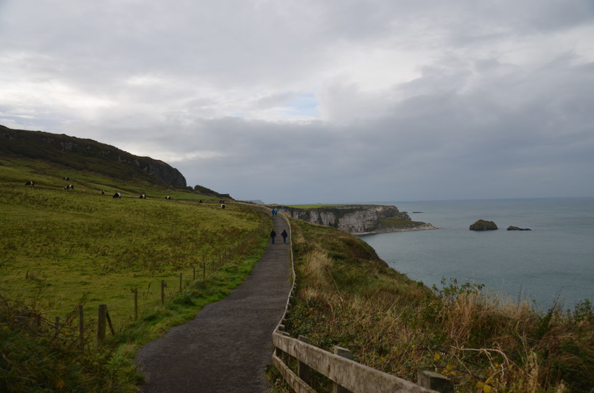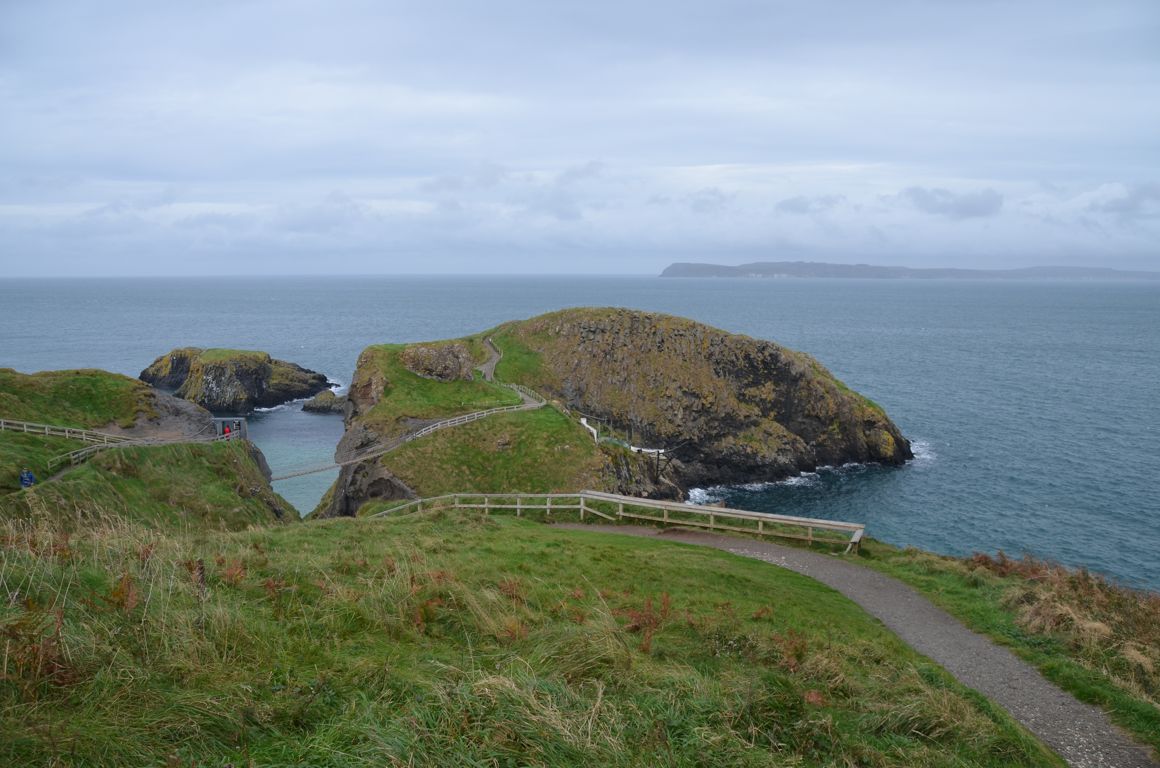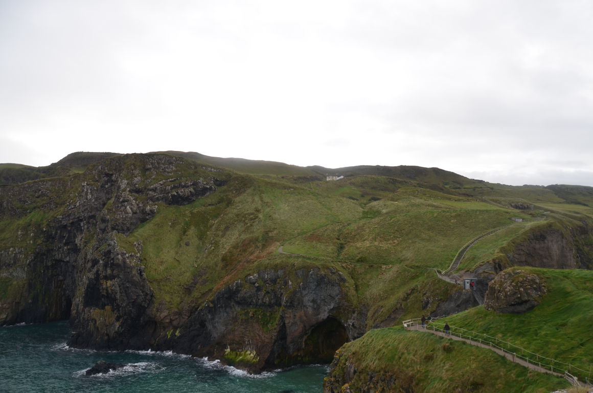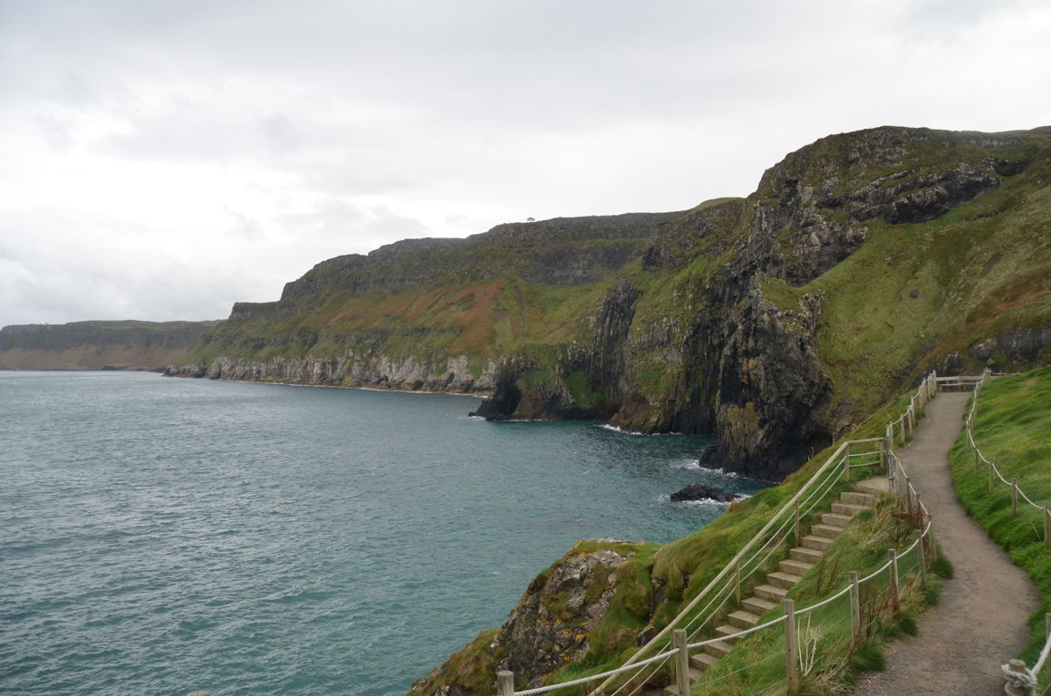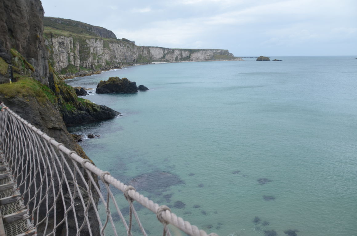 Une petite balade de 10-15 minutes (environs 1 km) depuis la carrière de Larrybane sera nécessaire afin d’atteindre le pont de corde, via un sentier aménagé (facile mais peut être glissant sous la pluie). Les vues sur l’océan et les falaises calcaire de la côte d’Antrim sont déjà impressionnantes depuis ce petit sentier. Au loin, on peut même apercevoir l’île de Rathlin et les îles écossaises. C’est également un bon endroit pour observer les oiseaux.
