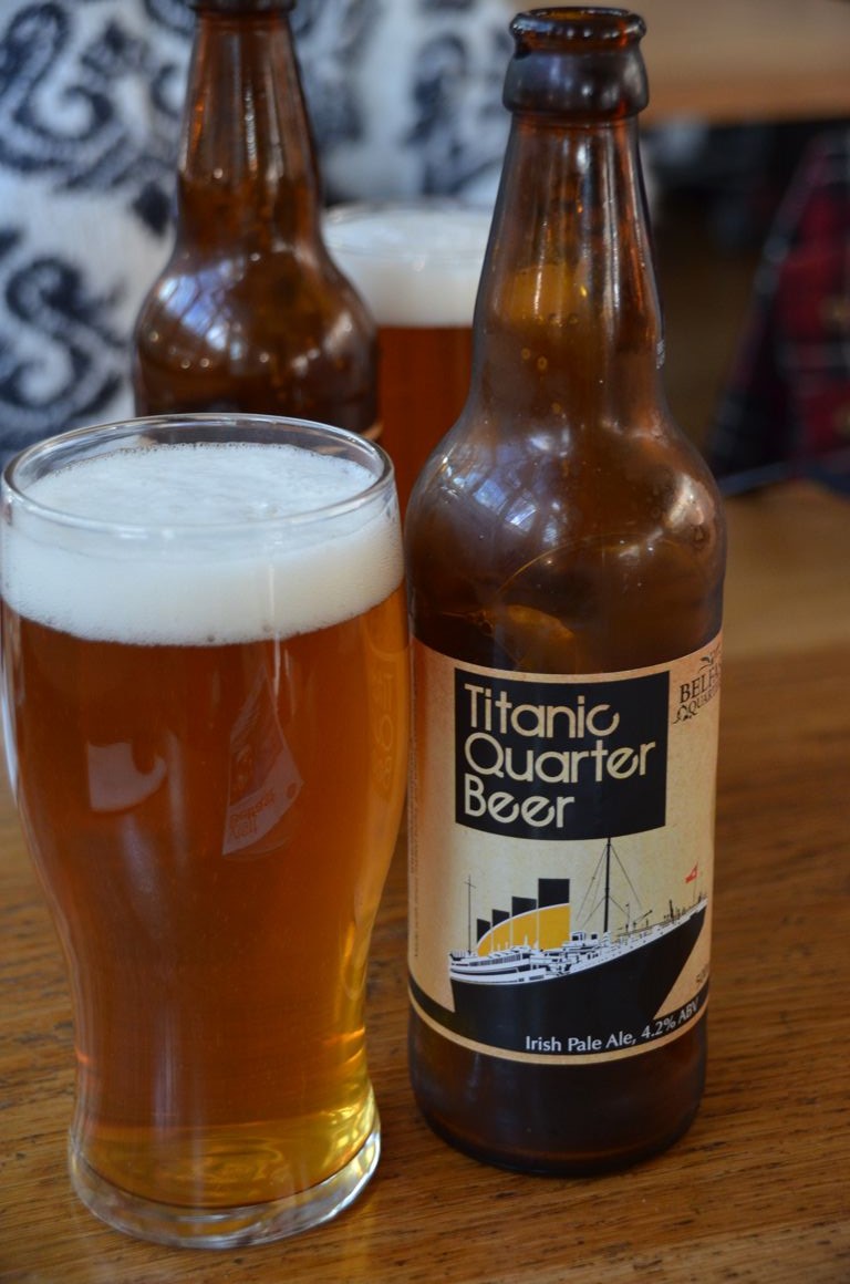 A l’étage du marché se trouve également un petit restaurant où vous pouvez manger ou boire un verre plus tranquillement, tout en observant les allers et venues dans le marché. Nous en avons profité pour goûter une bière locale, la Titanic Quarter Beer, qui fait référence au quartier voisin qui héberge aujourd’hui le musée Titanic.