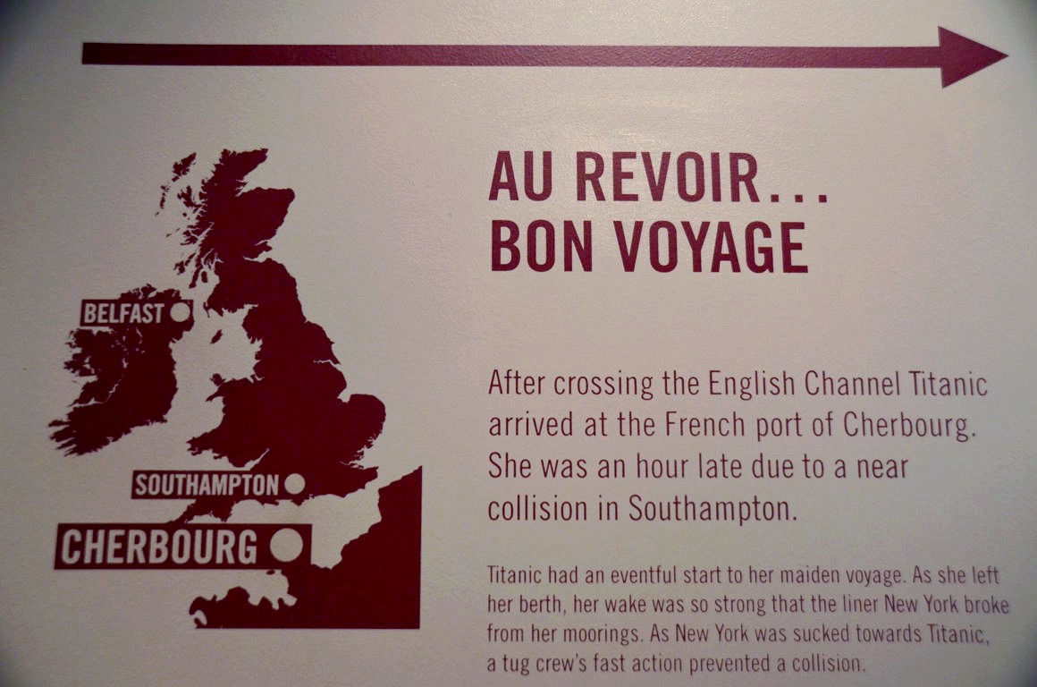 L’exposition retrace ensuite, pas-à-pas, le voyage du Titanic de Belfast et de ses arrêts à Sauthampton, Cherbourg et Queenstown. Un voyage catastrophique depuis le début, puisque à peine parti, celui-ci aurait déjà raté de peu une collision avec un autre navire !