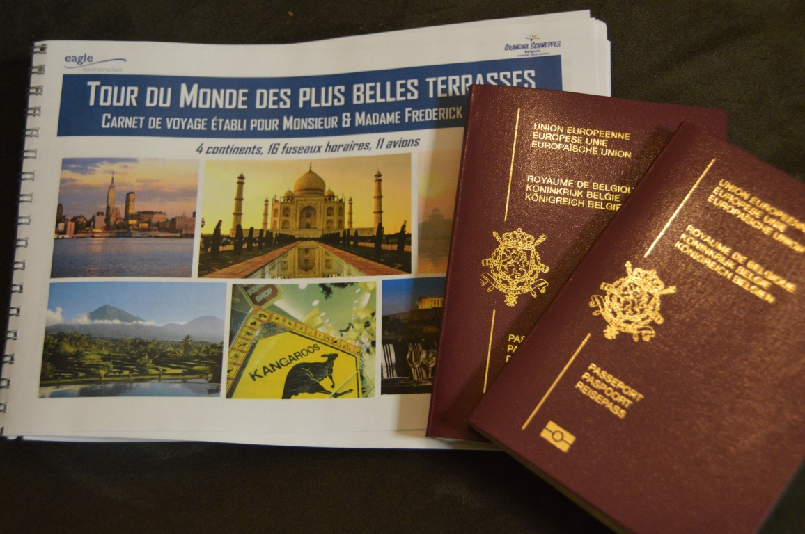 Comme vous le savez peut-être déjà, il y a quelques mois de cela, Schweppes (et son « Club of Good Taste« ) a lancé un concours pour trouver le « meilleur goût de Belgique », et, au bout d’une journée testant les sens et le goût des 20 finalistes, il s’est trouvé que ce « Best Taste Of Belgium », c’était moi ! ;-) Le prix à la clé de ce concours pour le moins original? Rien de moins qu’un tour du monde des plus belles terrasses, tous frais payés… Un rêve de 22 jours que l’on s’apprête donc à vivre à partir de ce dimanche. Après des mois de travail de la part de l’équipe Schweppes et surtout de l’agence de voyage qui collabore avec eux, Eagle Travel, nous avons reçu aujourd’hui le programme final… Hôtels 5 étoiles, excursions privées,… Nous allons parcourir 4 continents, traverser 16 fuseaux horaires et prendre pas moins de 11 avions: Bruxelles-Londres-Athènes-Amman-Delhi-Hong kong-Denpasar-Jakarta-Sydney-New York-Madrid-et back to Bruxelles ! Ouf… Ca ne va pas être de tout repos tout cela !