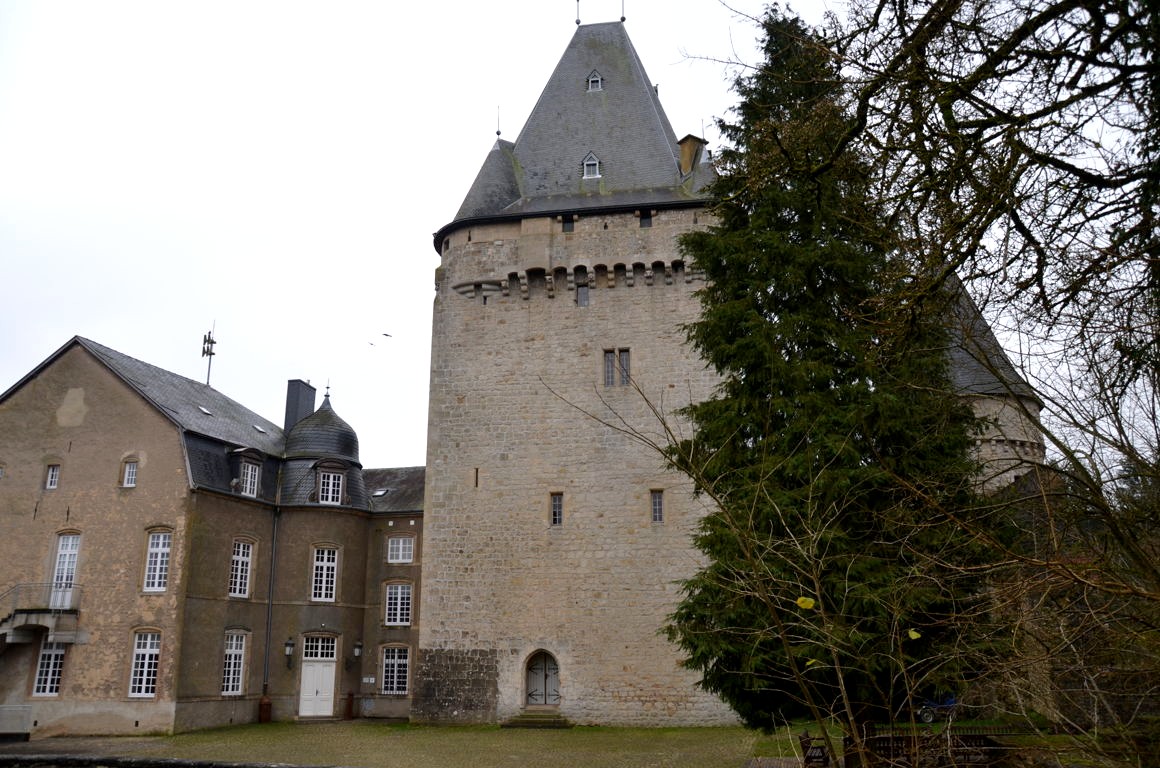 En voici un château étrange, situé en plein centre-ville et abritant aujourd’hui la… maison communale ! Le château de Mersch fut détruit et reconstruit plusieurs fois depuis le 13ème siècle. Le château actuel a été renové en grande partie dans la deuxième moitié du 20ème siècle. L’intérieur du château ne se visite pas.