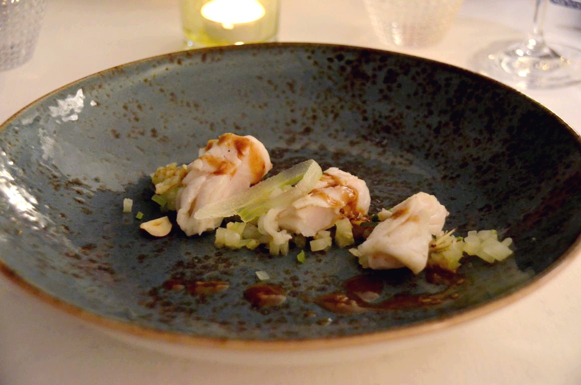 Nous continuons avec une deuxième entrée un peu plus classique mais tout aussi délicieuse : sandre, chou rave, céleris, noisettes.