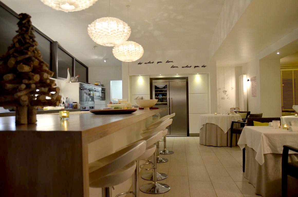 Nous sommes dans les premiers à arriver au restaurant ce soir-là, et nous découvrons avec plaisir que notre table se situe juste à côté de la cuisine ouverte du restaurant, d’ailleurs récemment rénovée.