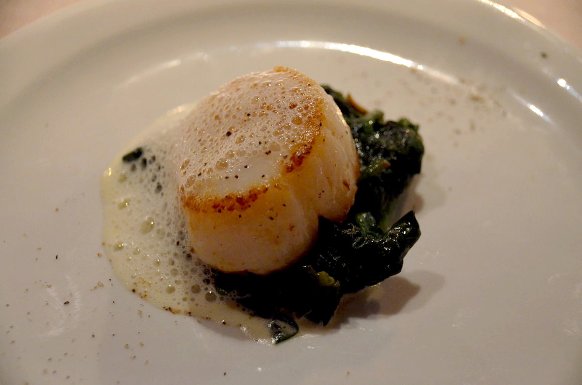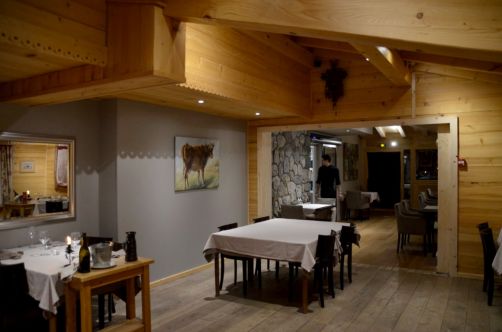 Le chef Alexandre Baud-Pachon y propose une cuisine moderne et raffinée. J’y ai mangé un très bon foie gras de canard cuit au torchon, accompagné d’un chutney de fruits pavé de maigre, ainsi qu’une émulsion de crustacés et poêlée provençale, suivie en dessert d’un macaron au chocolat et sorbet poire. Ce n’est pas un repas montagnard traditionnel, mais c’était cependant très bon !