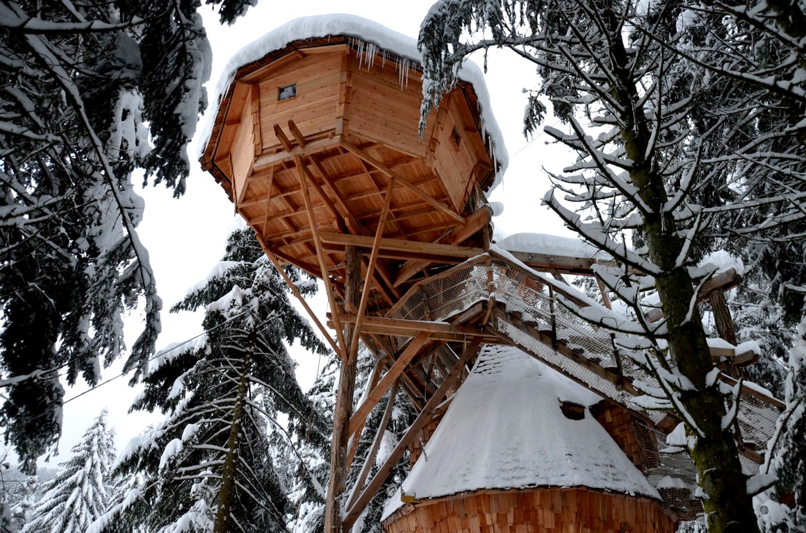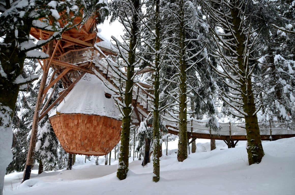 En s’avançant encore un peu plus dans la forêt, on remarque soudainement le dernier type de cabane : les cabanes dans les arbres ! Bien cachées au milieu des sapins, ces cabanes perchées ou sur pilotis plairont aux petits et aux grands enfants…