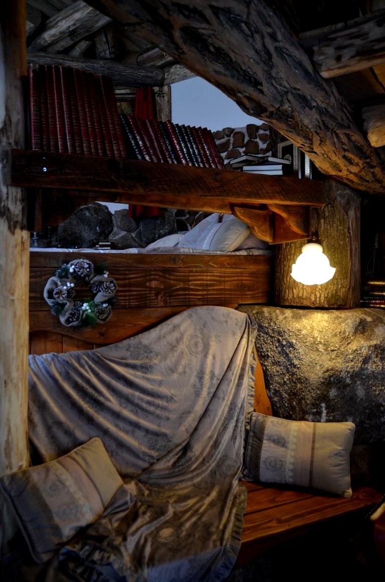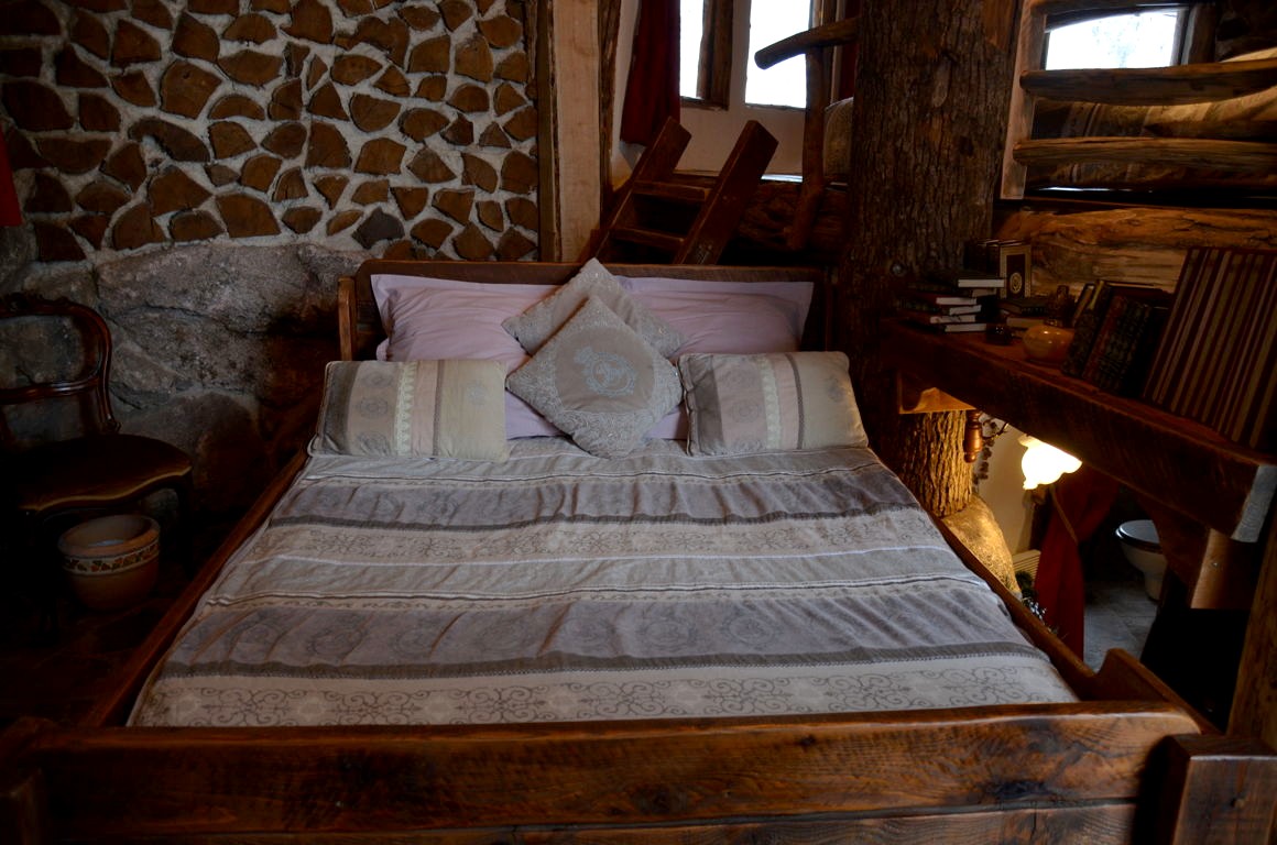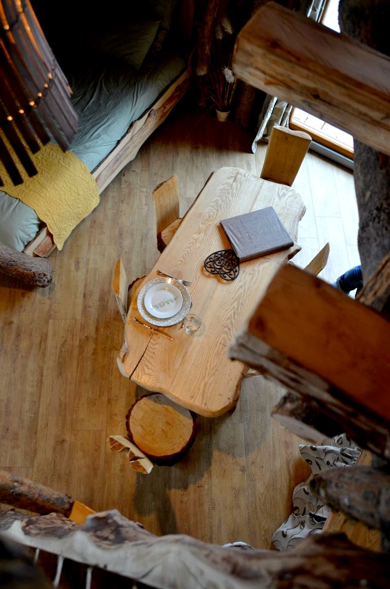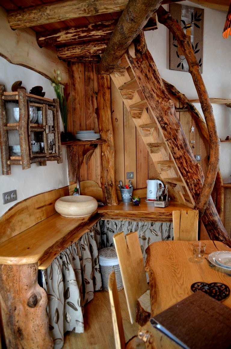La Maison du Hobbit est une cabane à la décoration vraiment recherchée. Une fois poussée la porte, on entre réellement dans un autre monde ! La salle de bain creusée dans la pierre est assez surprenante, et le gros poële en face du lit promet de longue soirées cocooning au coin du feu…