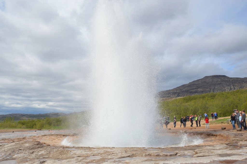 Au printemps, en Islande, il faut être content si on atteint les 15°C. Et – tant mieux pour nous ! – c’est à peu près la température que nous avons eu durant tous le voyage, excepté à Reykjavik, qui semble bien mériter son nom de « baie fumante » – on ne sait pas très bien s’il s’agit de pluie, de brouillard ou de hot springs dont les Vikings parlaient, mais en tout cas on y trouve les 3. Et 15°C en Islande, c’est beaucoup : il faut imaginer une belle journée ensoleillée à la montagne, avec 15°C, on enlève sa veste et on a encore trop chaud, quand le soleil tape !