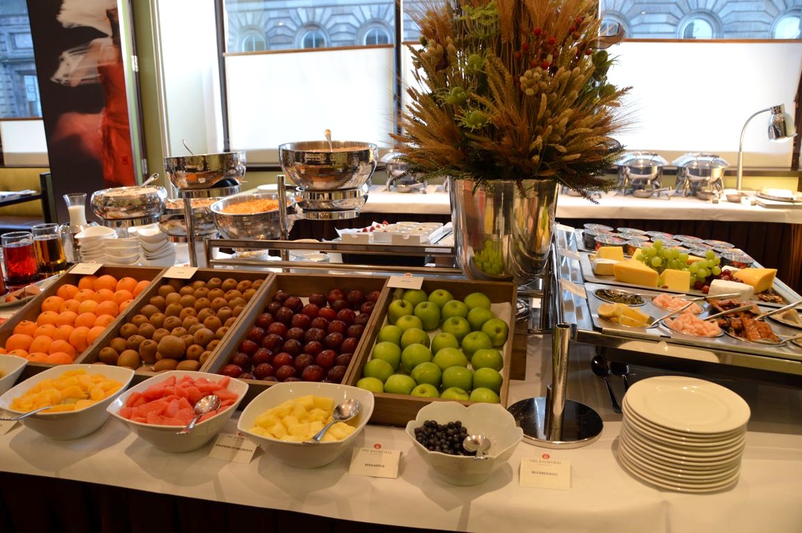 Le petit-déjeuner se prend dans un des restaurants de l’hôtel, Hadrian’s Brasserie. Le buffet est très complet, on y trouve notamment un bel assortiment de fromages et produits locaux, de délicieuses viennoiseries, et tous les ingrédients du full Scottish breakfast (que l’on peut également commander à la carte).