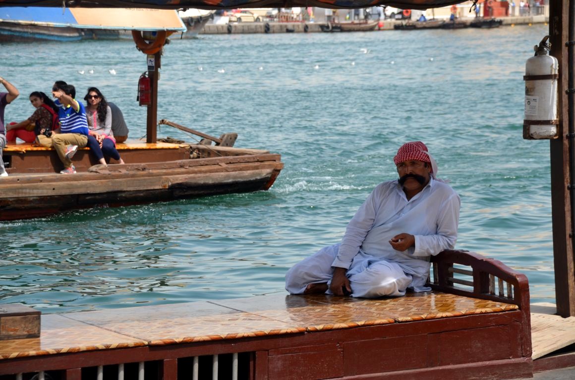Pour continuer notre visite, il nous faut maintenant prendre un petit bateau qui nous emmène de l’autre côté du bras de mer qui divise en deux le Vieux Dubaï, communément appelé « The Creek » (ou Khor Dubaï).