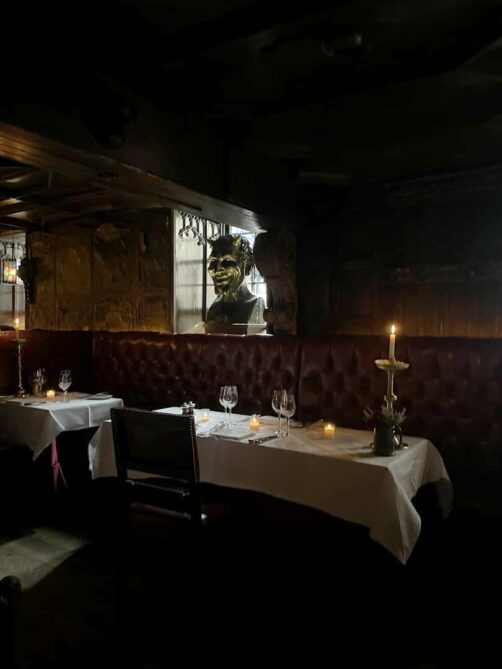 Un de mes derniers coups de cœur en date à Édimbourg, c’est The Witchery, l’un des restaurants les plus insolites de la ville (mais aussi un hôtel très, très haut de gamme), situé dans un bâtiment historique datant 16ème siècle, juste à côté de l’entrée du château d’Edimbourg. L’endroit doit son nom aux nombreuses sorcières qui ont été brûlées au bucher à cet endroit aux 16ème et 17ème siècles. Le resto se vante notamment d’être fréquenté par de nombreuses célébrités, notamment J.K. Rowling, Kate Moss, Pierce Brosnan, Emma Thompson, et bien d’autres.