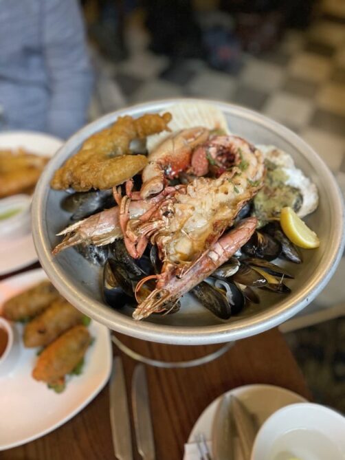 The Cafe Royal est un splendide café historique d’Edimbourg, avec une partie oyster bar (qui serait le plus vieux d’Ecosse) ultra atmosphérique, avec notamment de se magnifiques vitraux créant un cadre assez unique. Mais ce cadre n’est que la cerise sur le gateau puisque leur plateau de fruits de mer chaud (avec huîtres du Loch Fyne, du homard, des crevettes de l’Atlantique, des moules, du soft shell crab,…) est probablement le meilleur plateau de fruits de mer que j’ai jamais mangé ! Leur fish & chips était aussi excellent. Les tarifs sont un peu élevés, mais pas excessifs au vu de la qualité. Surtout que je rêve encore de ce repas !
