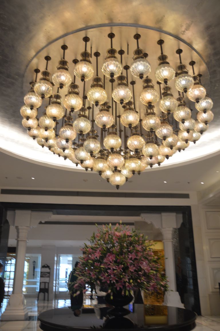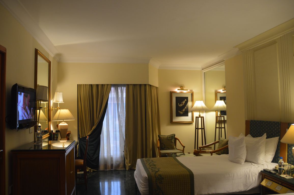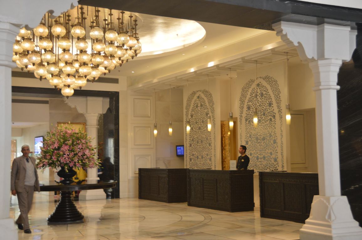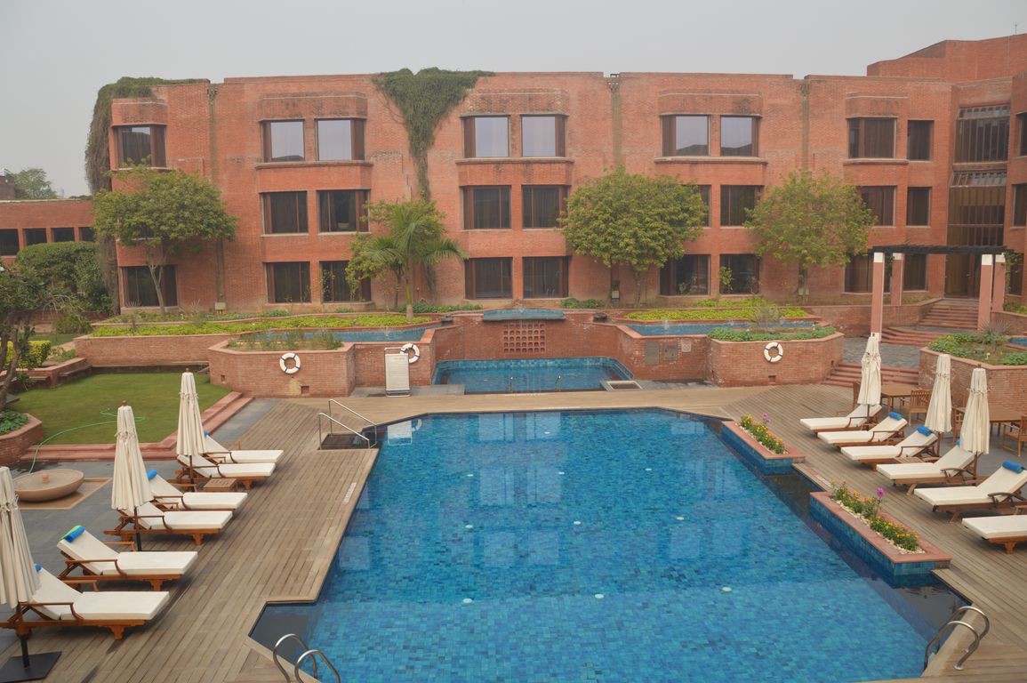 Nous nous rendons directement à notre hôtel (où nous passerons juste une nuit, avant d’être transféré dans un hôtel très spécial dont on vous parlera demain…), l’ITC Mughal, A Luxury Collection Hotel & Spa. Construit selon le modèle du Fort Rouge d’Agra et en honneur à la dynastie Mughal, cet hôtel en pierre rouge est immense et très agréable, avec un cadre beaucoup moins surchargé que The Royal Plaza à Delhi. Ici, c’est un style oriental moderne que l’on retrouve, avec de grands espaces très clairs et de nombreux jardins.