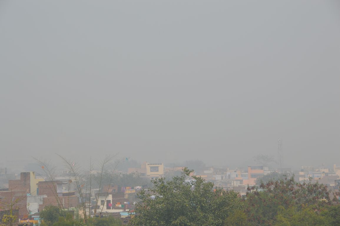 Ah oui, on a aussi été jusqu’à « l’observatoire » de l’hôtel, avec « vue sur le Taj Mahal »… Bon, ok il y a du brouillard, mais il nous a fallu dix minutes pour trouver le petit bout qu’on voit au loin (alors, vous l’avez trouvé?!). Au moins ça nous fait du spoiler pour demain… :)