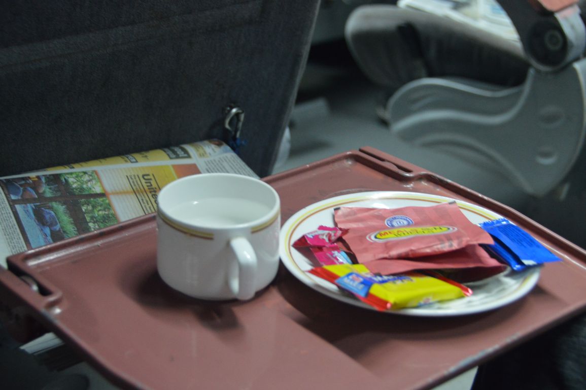 Enfin, le choc est de courte durée car nous nous faufilons le plus rapidement possible à travers la foule et rentrons dans un des deux seuls wagons de première classe de l’énorme train en direction d’Agra. Ok, là on sent que les britanniques sont passés par là. En quelques pas, on retrouve sont petit confort, avec journaux, boissons et repas gracieusement offerts. 5 personnes pour servir un wagon, et le tout pour environs 8€ par personne. La SNCB, si vous lisez ceci… Je serais curieuse de voir ça en Belgique :D