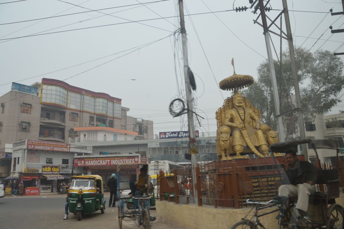 Nous décidons quand même de rappeler notre chauffeur pour une petite heure de shopping au bazaar d’Agra. Pas très rassurés au début (pas de concierge pour nous accompagner ici, et des estropiés qui nous « courent » après, où du moins essayent, pour une petite pièce). Finalement, nous trouvons quand même notre bonheur, avec du Ganesh encore et toujours, sur une étole en soie (que je porterai sans doute une fois avant qu’elle ne finisse en nappe) et avec des petites statues faites main hyper colorées.