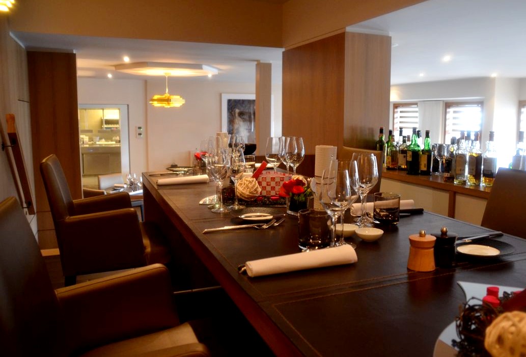 Le Centpourcent est l’endroit parfait pour une escapade gastronomique à Malines. Le restaurant occupe une petite maison lumineuse décorée de manière assez moderne. Nous prenons place à une grande table séparée en plusieurs tables de deux personnes, et décorée dans les tons rouges, Saint-Valentin oblige !