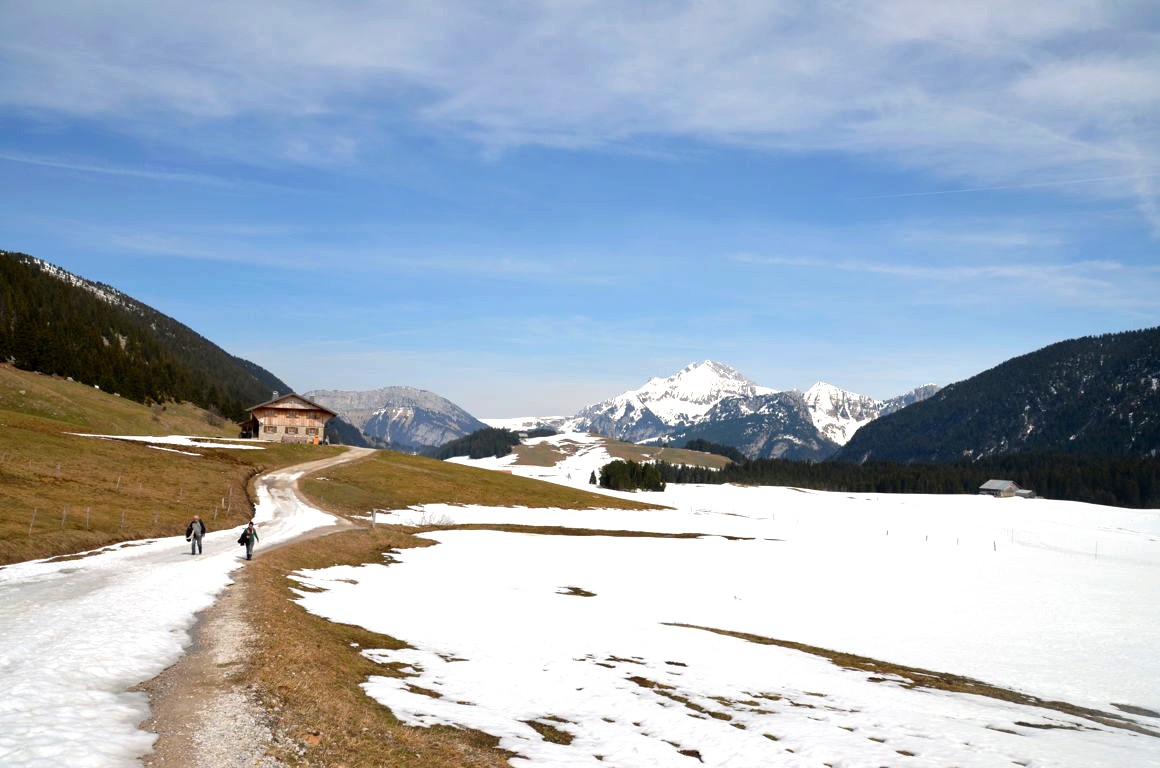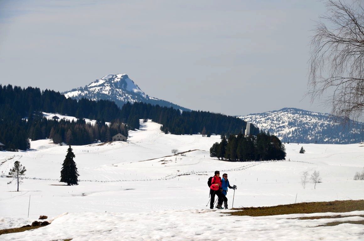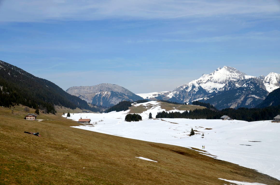 En ce weekend ensoleillé d’avril, quelques skieurs de fond et raquettistes profitaient encore de la neige qui disparaissait peu à peu du plateau. Quel calme et quels paysages ! Mon coup de coeur fut quasi immédiat.