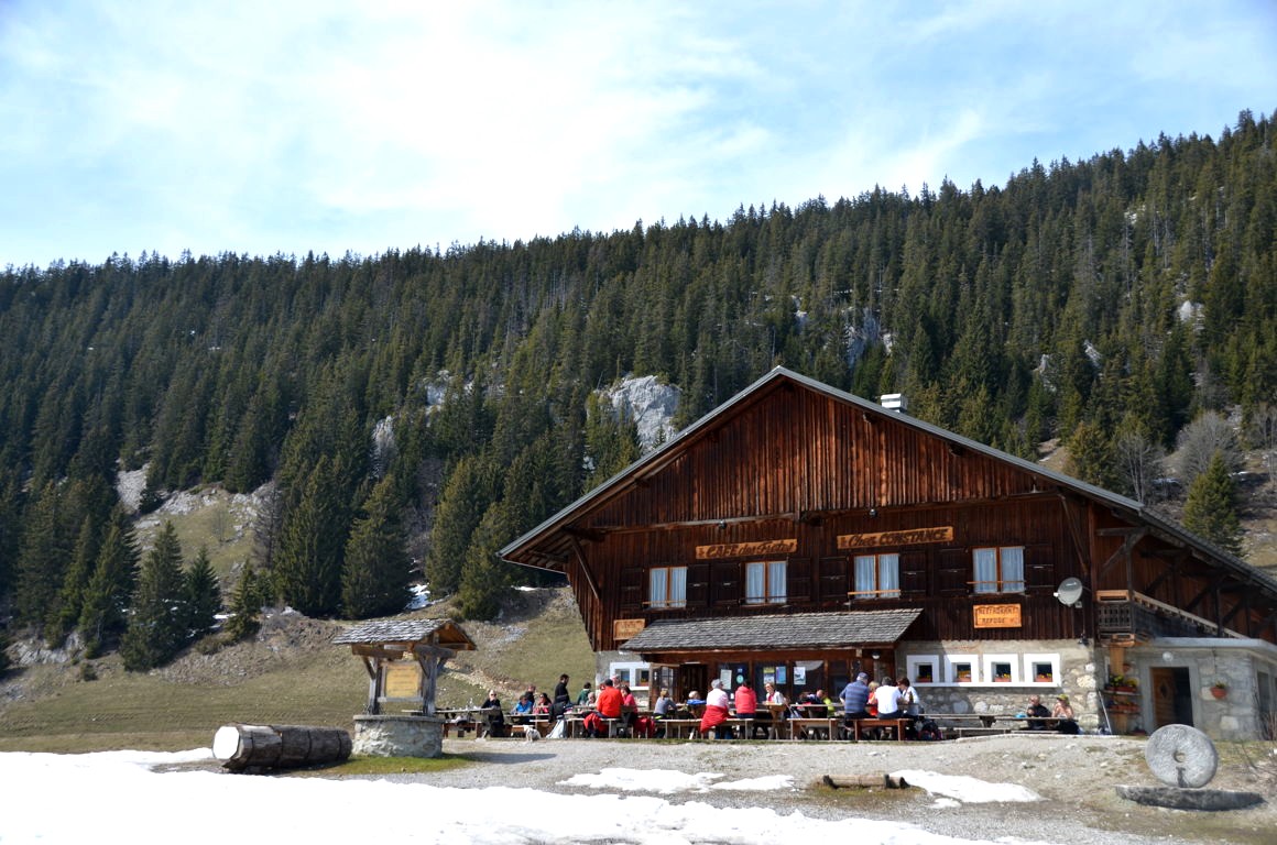 Mais avant de faire un peu de randonnée à pied le long du sentier historique du Plateau des Glières, nous prenons la direction du chalet-refuge d’alpage « Chez Constance », pour y déguster un lunch montagnard en plein coeur du plateau…. et en terrasse, s’il vous plait !