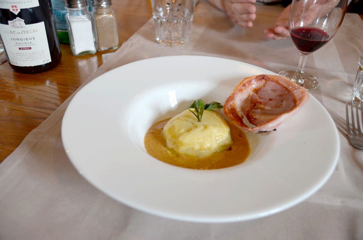 Ce qui est ouvert toute l’année par contre, c’est l’Auberge du Château de Clermont, où l’on peut déguster un menu du terroir à base de produits locaux, comme ce délicieux gâteau de pommes de terre accompagné de reblochon Chabert et de crème au lard des Aravis, ou encore ce beau morceau de boeuf accompagné d’un jus à la Mondeuse Héritier, un vin rouge de Savoie.