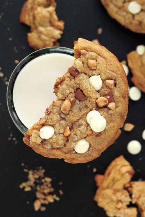 But at the end of the day, a chunk of chocolate is all I really need. ← If you feel the same, get ready to fall in love with today’s recipe. Rich, creamy, dark chocolate swirled with roasted almonds and toffee. Just one bite will have you hooked… trust me! I made a pound last week and um… what’s that? There’s NONE left.