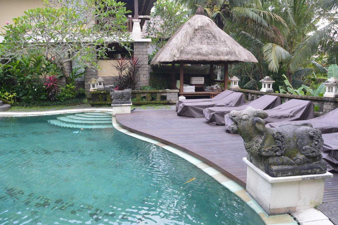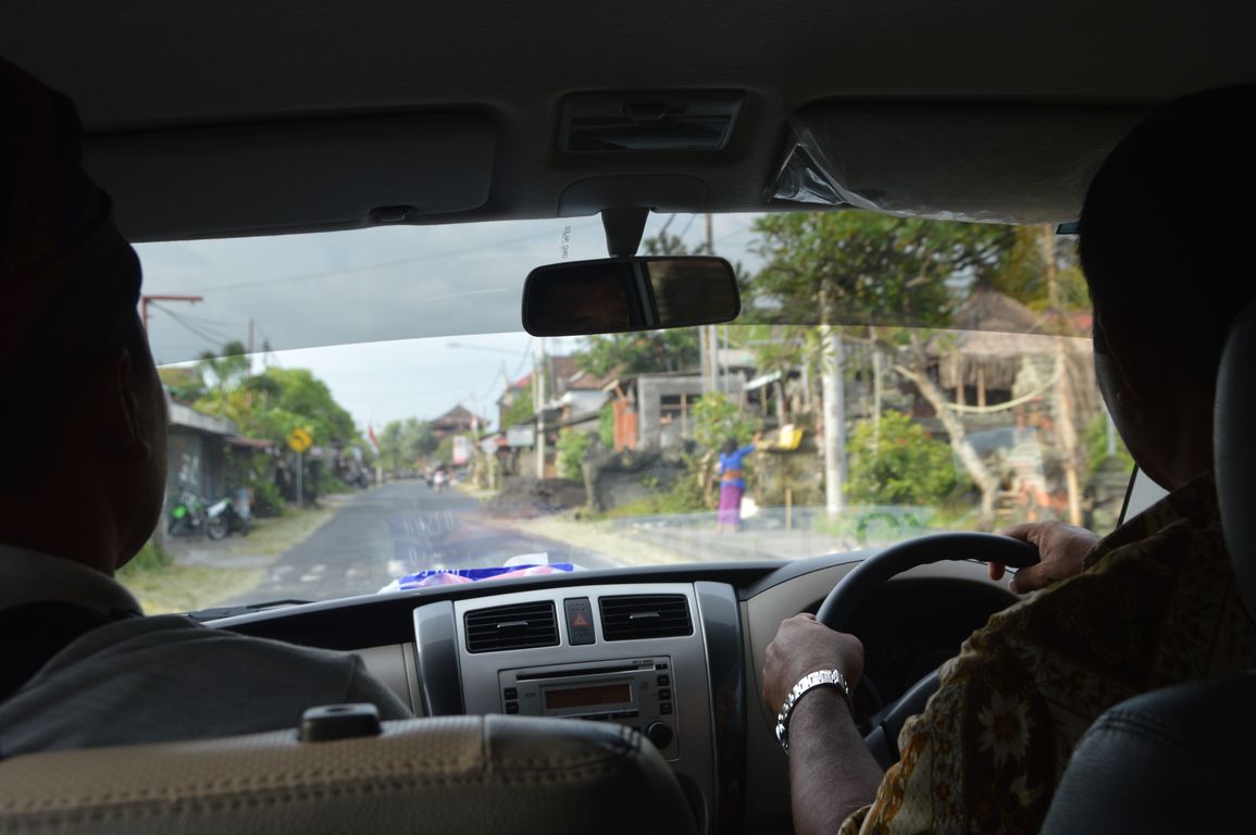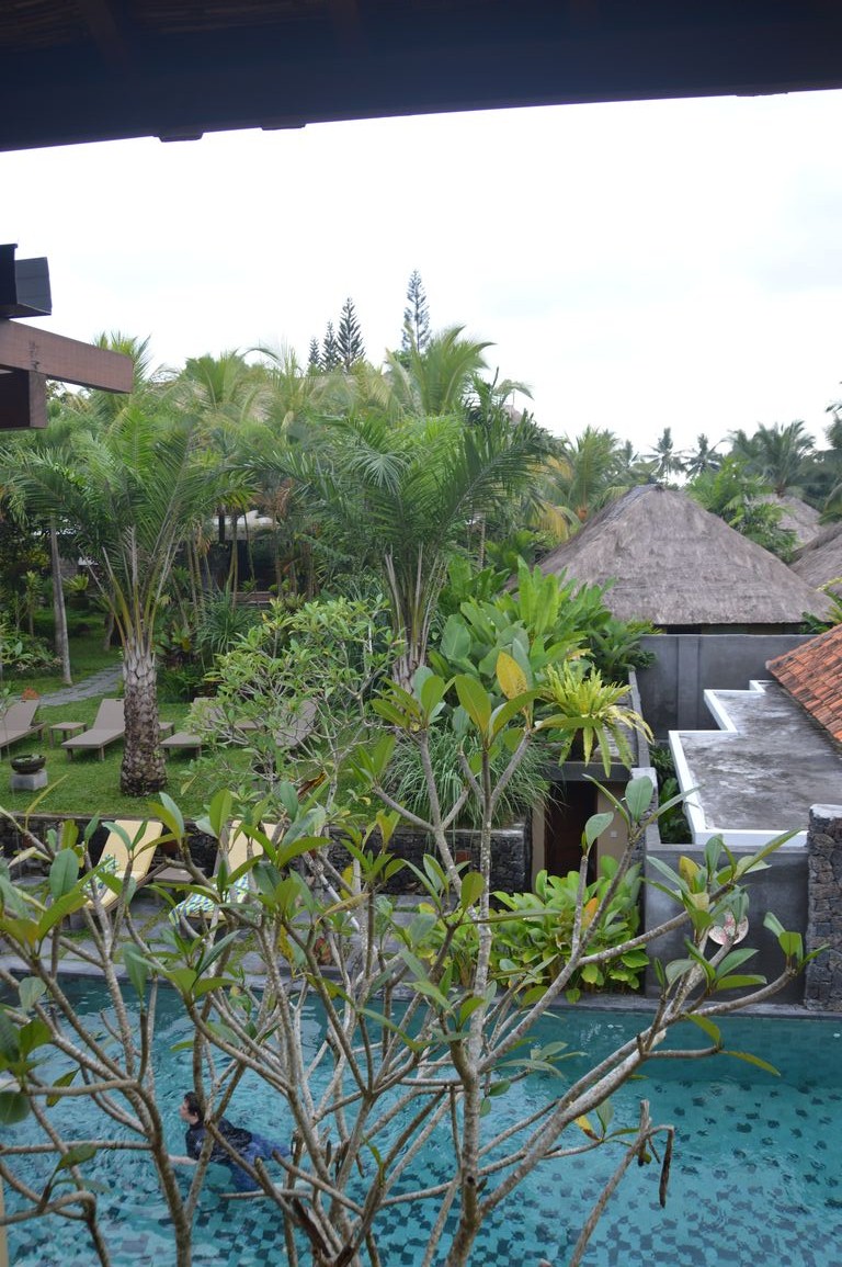 5 février, 14:55. Après 5 heures de vol, nous arrivons enfin à l’aéroport de Denpasar. Hello Bali ! Nous y sommes de suite accueilli par notre chauffeur et guide, qui nous emmènent à notre hôtel à Ubud: Kori Ubud. 40km, 1h30 de route. C’est ça Bali, nous dit le guide: une petite île, mais pas super bien construite niveau route… Au moins ici il y a moins de klaxons et on les utilise juste pour « saluer un ami ou prendre sa priorité ». Bref, comparé à l’Inde, c’est presque le bonheur sur la route.