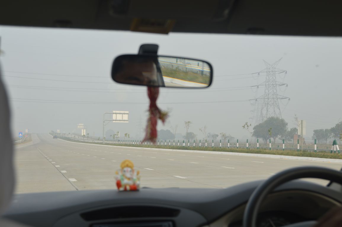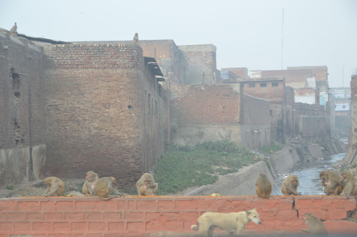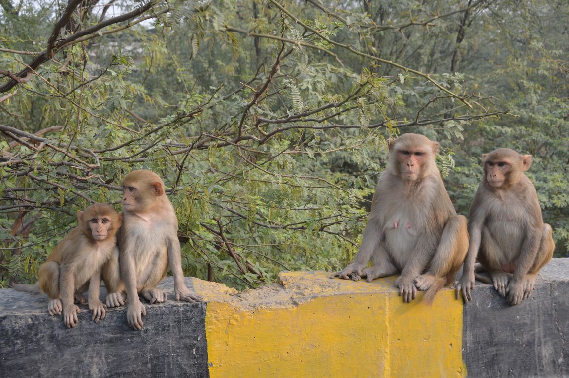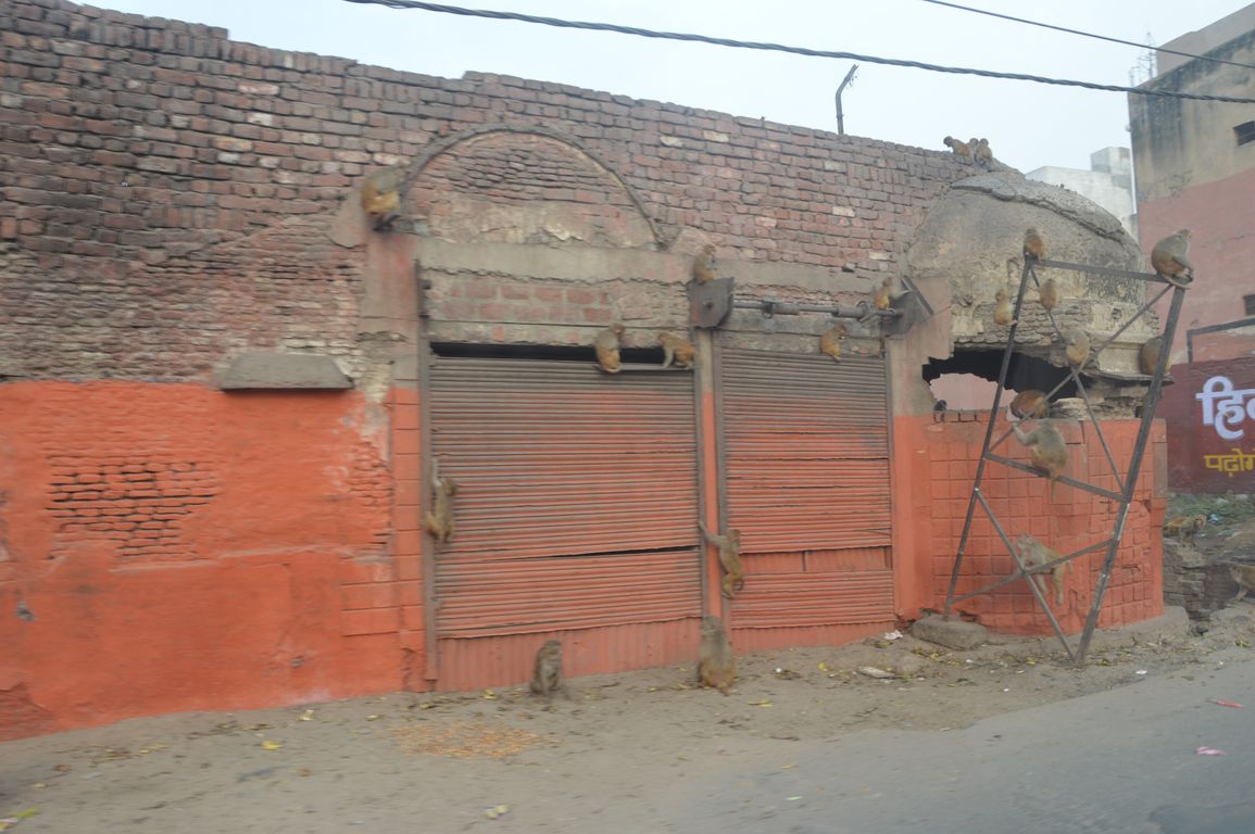 4 février, 8:30: après un excellent petit déjeuner à l’Oberoi Amarvillas et avoir admiré une dernière fois la vue sur le Taj Mahal, nous reprenons le chemin de Delhi, cette fois par la route. Quel soudain changement une fois sortis de la ville: finis les klaxons, les routes sales… place à l’autoroute toute neuve et payante… et vide! Enfin presque… les babouins eux ne doivent pas payer, alors ils peuvent s’y aventurer !