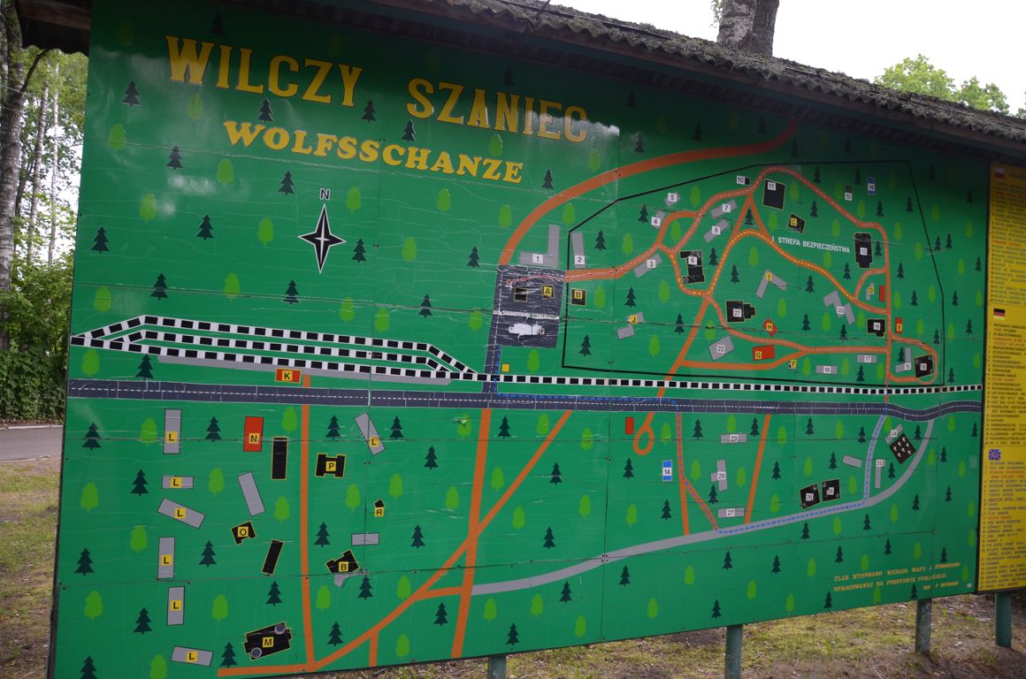 Le site de la Tanière du Loup était une véritable ville comprenant à l’origine plus de 200 bâtiments sur une surface totale de 8 kilomètres entourée d’une zone minée (plus de 55000 mines ont été retrouvées après la guerre !) et occupée par 2000 hommes dont 150 hauts officiers de l’Etat Major d’Hitler (… et seulement une vingtaine de femmes !). Le site était d’une telle ampleur qu’une ligne de chemin de fer le reliait à Berlin afin d’acheminer plus facilement les matériaux de construction. Pourtant, les habitants des villages voisins n’ont jamais su ce qu’il s’y passait: ils pensaient qu’on y construisait une usine chimique !