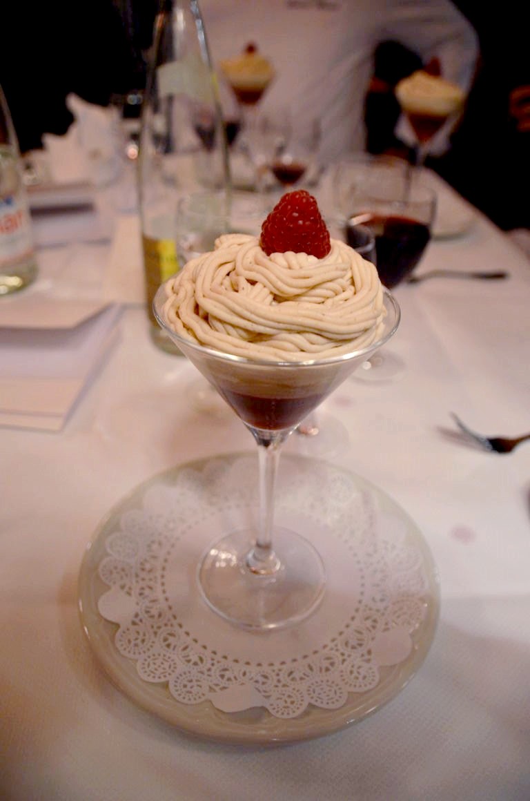 C’est d’abord Anthony Bannier, Ambassadeur Cocktail de Grand Marnier, qui nous prépara sa création, le Daisy Side Car (un cocktail très équilibré, entre le « sweet » et le « sour »), et en fin de repas c’est le chef Laurent Moreno, Ambassadeur gastronomie, qui réalisa pour nous son Grand Mont Blanc, un grand classique revisité spécialement pour l’occasion.