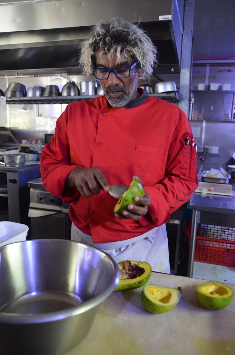 Guy est passionné par son île et ne manque pas de partager sa passion et tout son savoir avec les visiteurs de passage. Et il commence donc par m’apprendre à cuisiner une des spécialités de Martinique, le féroce, une entrée à base d’avocat et de morue: une bien bonne découverte !