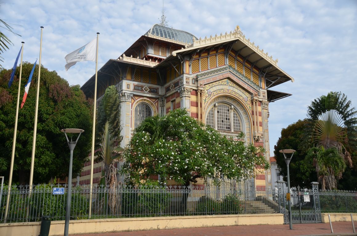 La bibliothèque au dôme de style byzantin avait d’abord été construite à Paris, où elle a été exposée à l’Expo Universelle de 1889, avant d’être transportée et remontée à Fort-de-France.