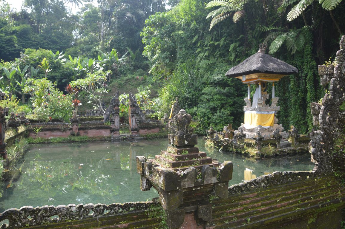 Enfin, nous terminons cette journée encore une fois bien chargée (et très instructive, nous avons passé les trajets à découvrir notamment la généalogie et les légendes hindoues, très imagées et romanesques) avec la visite des sources sacrées de Pura Gunung Kawi…