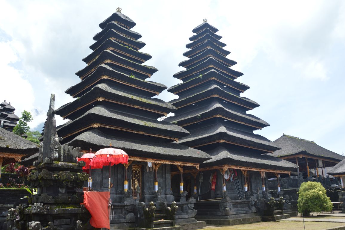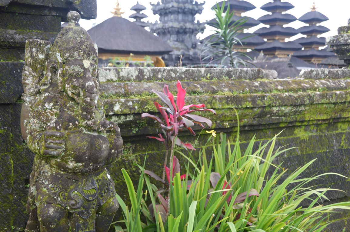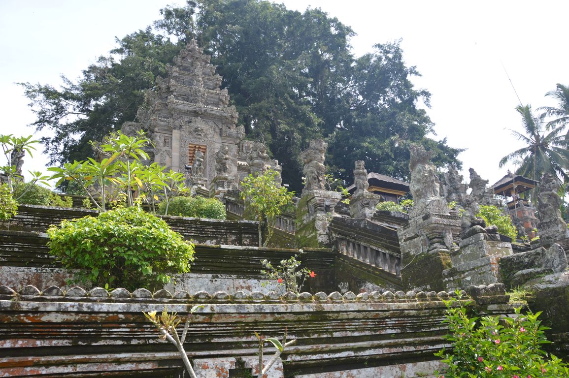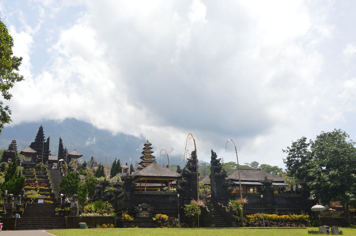 Nous continuons la « tournée des temples » avec la visite du plus grand temple de l’île, situé sur un des versants du Mont Agung (le plus haut volcan de Bali culminant à 3142 mètres): le temple Besakih ou « Temple Mère » de Bali. Le complexe du temple est toujours utilisé, et chaque jour des hindous viennent y faire leurs prières et offrandes à leurs dieux.