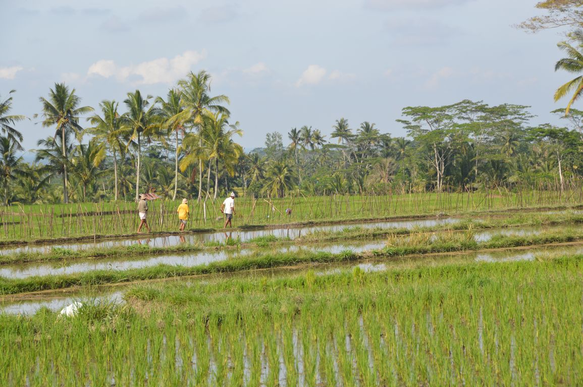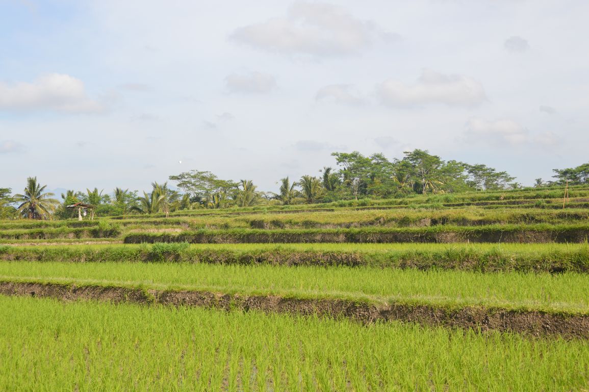 8:30 Nous retrouvons notre guide à notre hôtel le Kori Ubud Resort et partons en direction de l’arrondissement de Bangli, au nord-est. Sur la route, nous admirons encore aujourd’hui de beaux paysages de rizières…